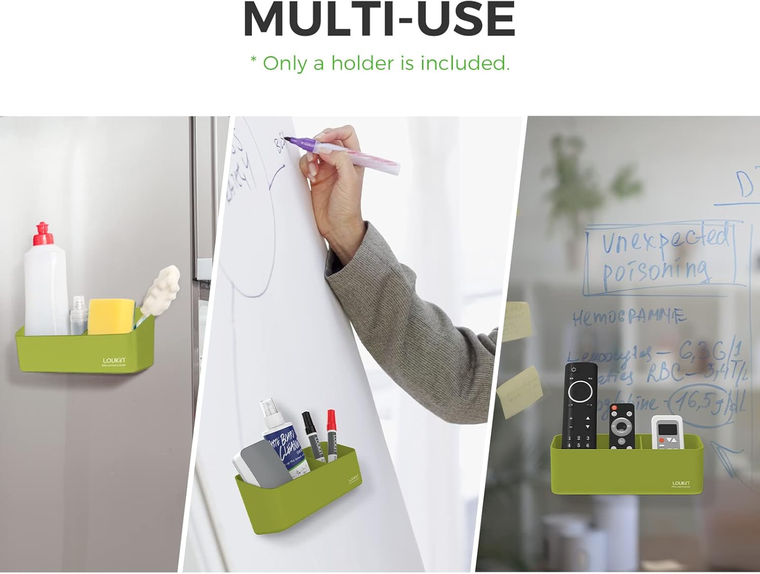 loukin Magnetic and Adhesive Marker Holder, Dry Erase Accessory Tray, Magnetic Storage Organizer for Whiteboard, Glass or Refrigerators (Green)