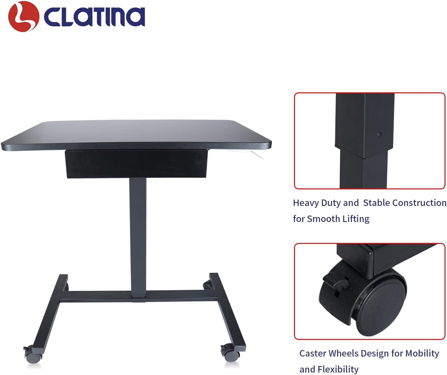 - 【EASY TO INSTALL & PROFESSIONAL】: No need for extra mounting tools. We provide detailed manual and all the necessary hardware to help assemble this mobile laptop desk more quick and efficient. we provide worry-free 3-year warranty, and friendly customer service. Come and experience this CLATINA multifunctional mobile standing desk.