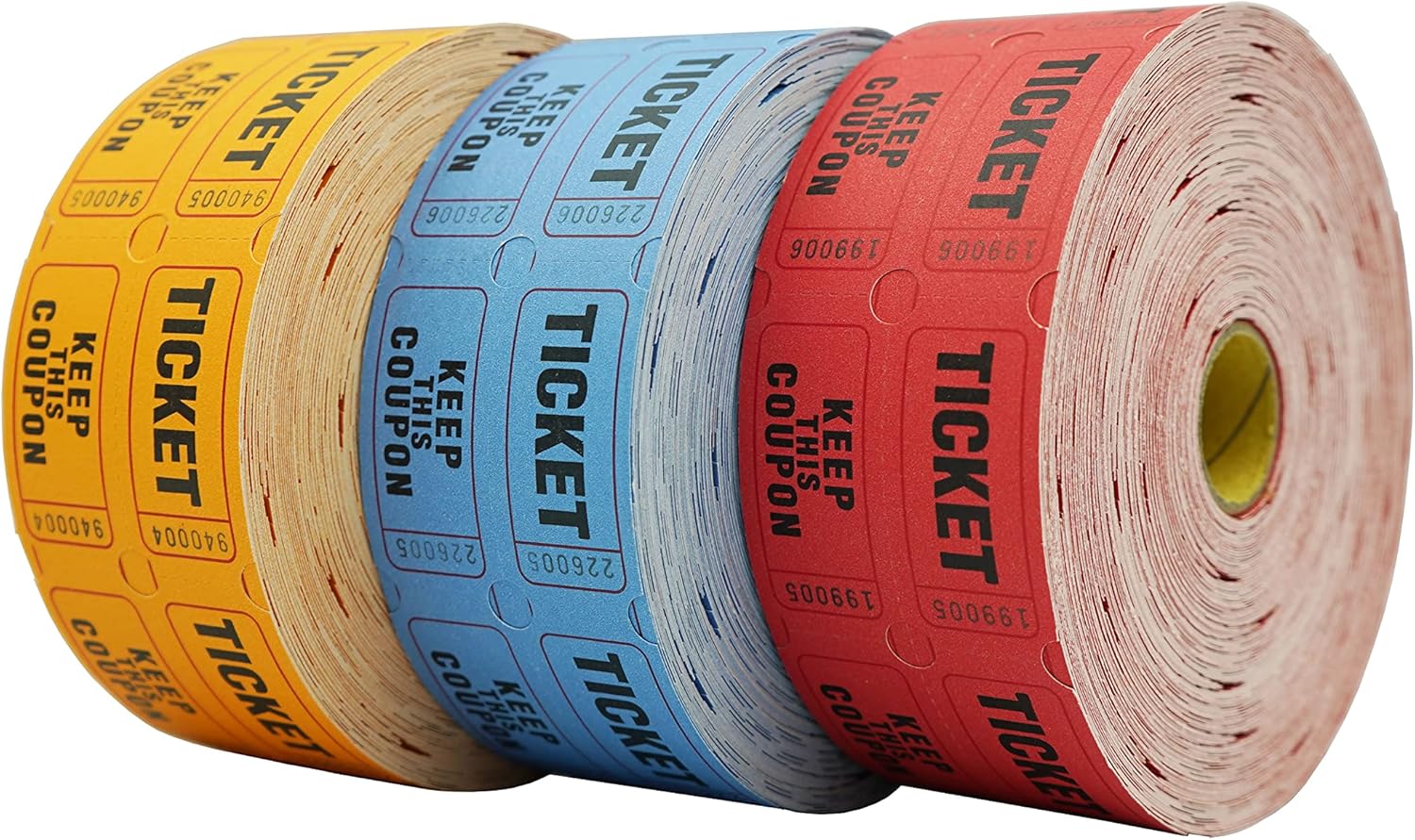 DNB 3000 Pairs Raffle Tickets - 3 Color Set of 1000 2 x 2 Inch 50/50 Double Roll Raffle Tickets - Red/Blue/Orange