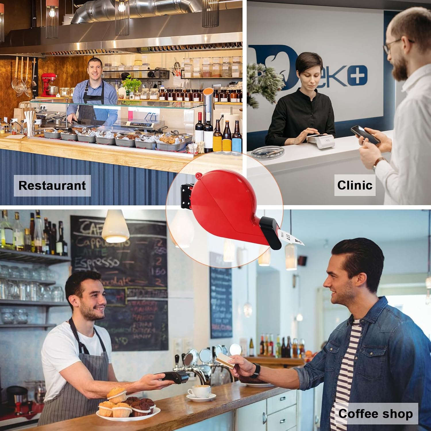 Red Ticket Dispenser Your Turn Take a Number System Turn-O-Matic Machine with 3000 Tickets per Roll 6 Groups 2-Digit Queue Number from A01-E99 White