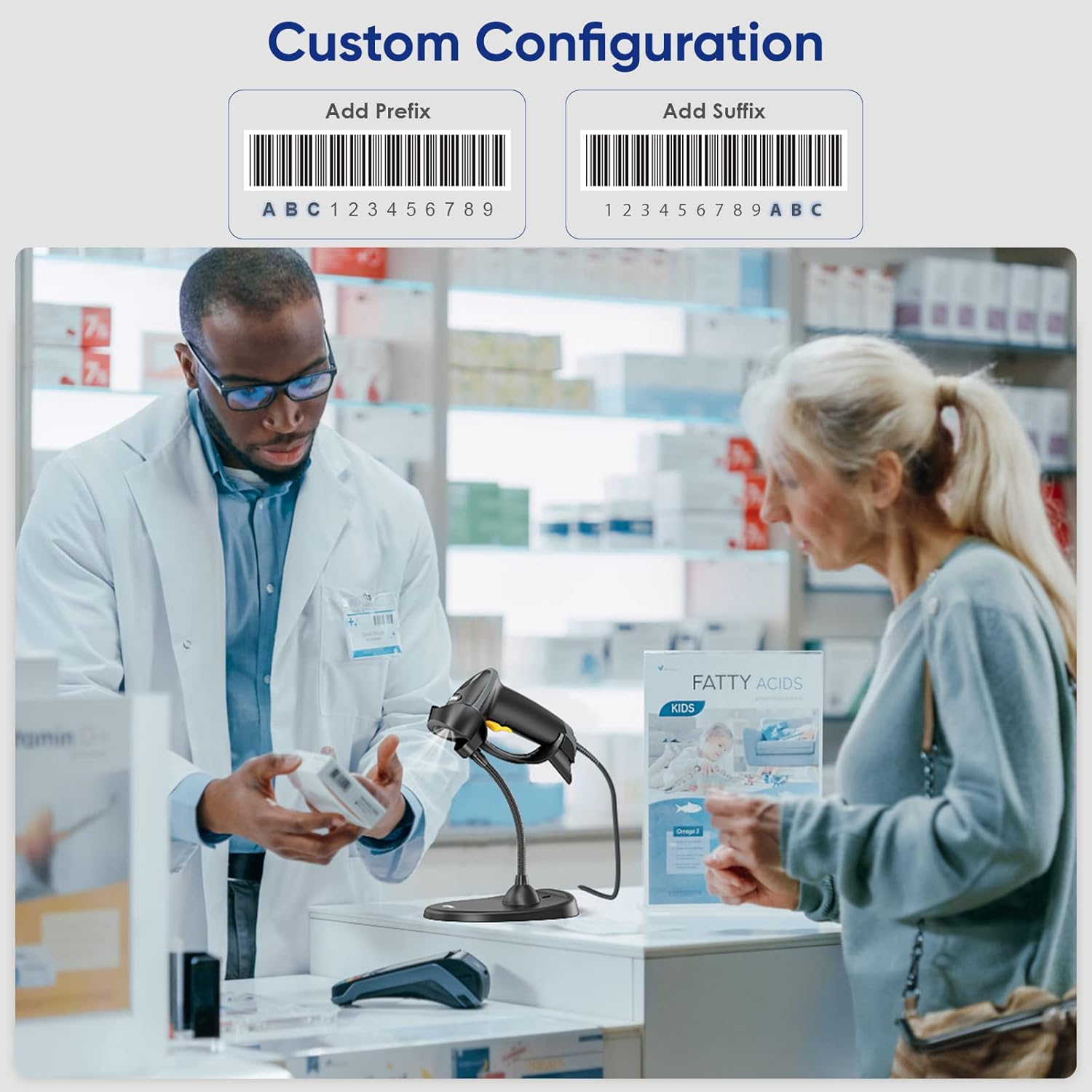 - 3 Scanning Modes, Handheld & Handsfree Freely Switch: With 3 types of scanning mode (Key Trigger Mode/Auto Sensing Mode/Continous Mode), only need to scan the set code of "auto-sensing" or "continous scanning mode", and put this Eyoyo barcode scanner into the gooseneck stand to achieve hands-free scanning working. Easily allows workers to switch between hands-free and handheld modes