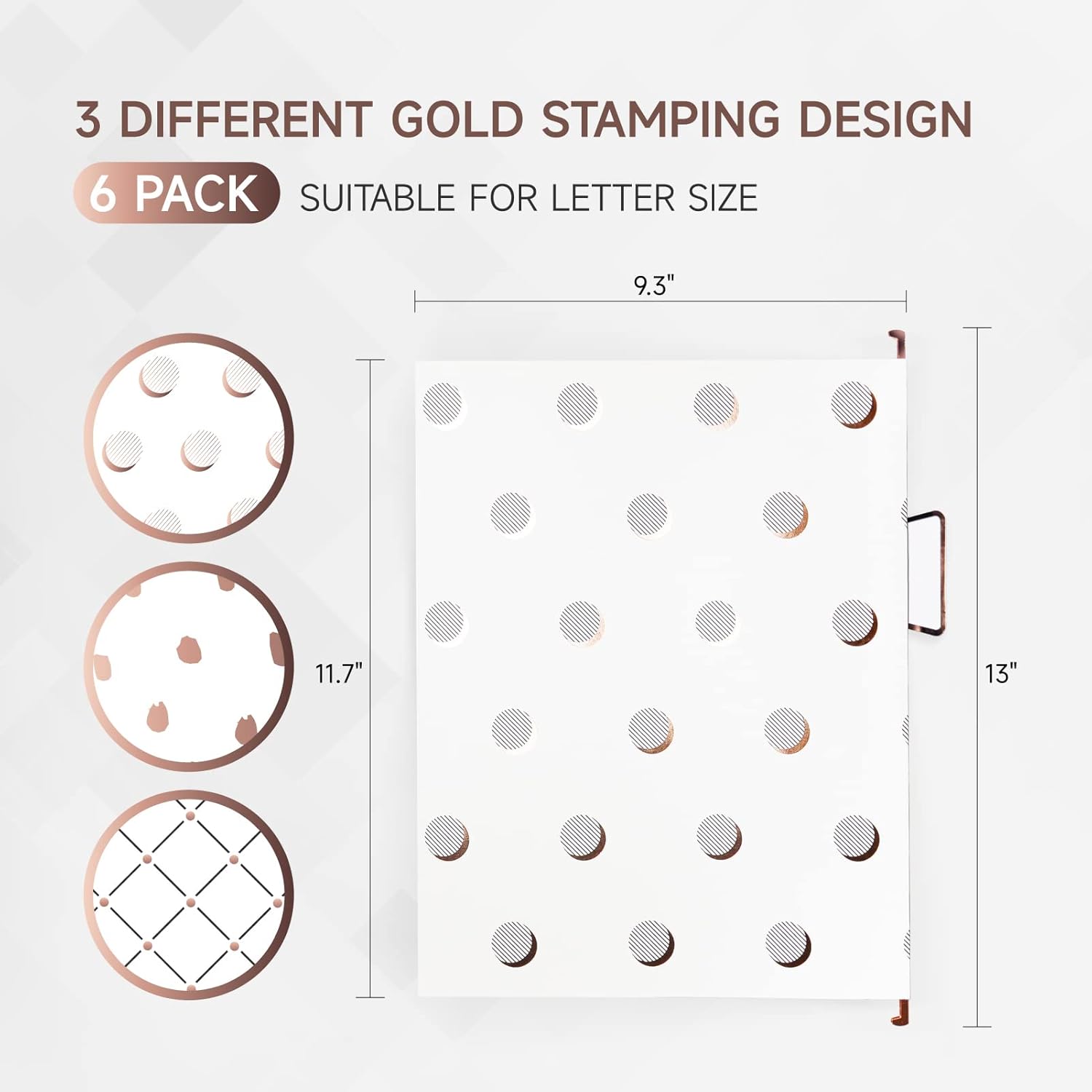 Y YOMA 6 Pack Rose Gold Hanging File Folders Letter Size Decorative File Folder Cute Pretty Hanging Folder Organizer for Filing Cabinet Office Home with 1/5-Cut Adjustable Tabs, 3 Gold Foil Design
