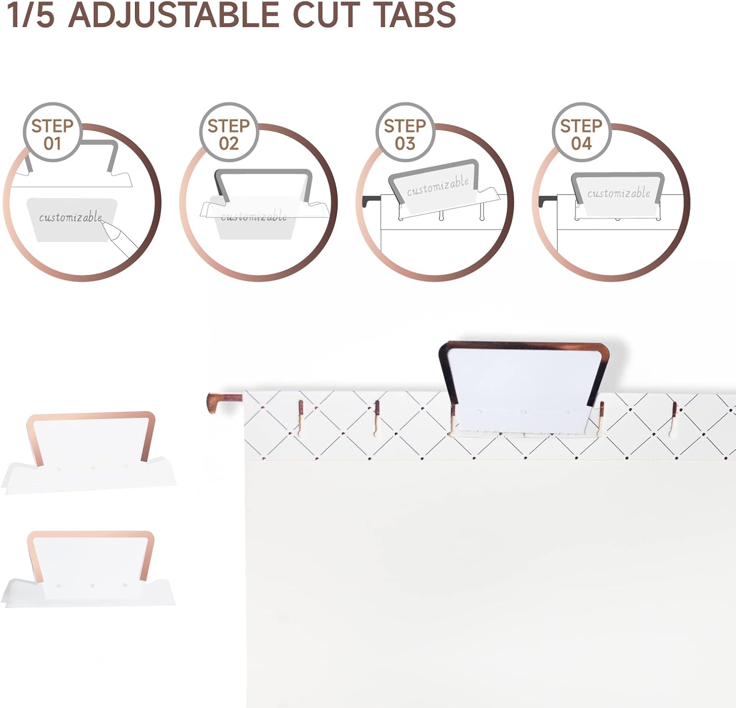 - Gold Foil Design - Unlike traditional file folder, our rose gold foil of hanging file folder and tabs can match the gold desk organizer, and bring fashion and a modern atmosphere to your desk, create a more luxurious and elegant space
