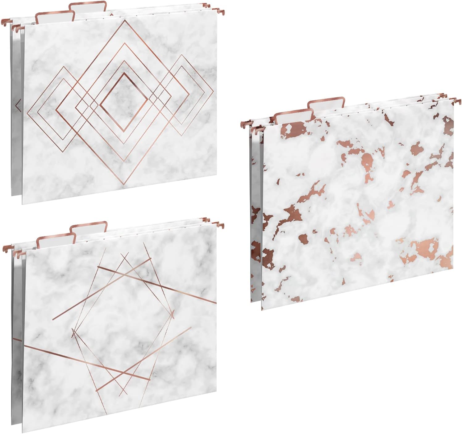 Y YOMA 6 Pack Rose Gold Hanging File Folders Letter Size Decorative File Folder Cute Pretty Hanging Folder Organizer for Filing Cabinet Office Home with 1/5-Cut Adjustable Tabs, 3 Marble Design
