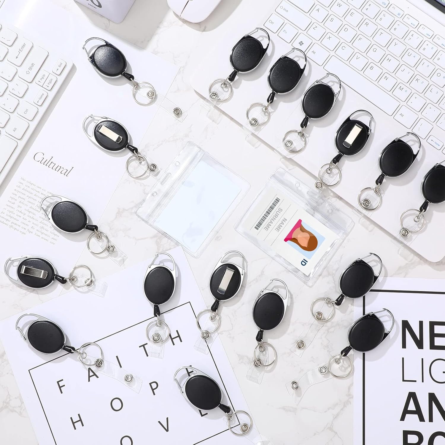 - Effortless to Use: retractable badge reels includes a spring clasp, plastic covers, retractable reel clip, stainless steel for a more secure connection way to ensure fasten to your belt loops, straps, backpacks, bags effortlessly and quickly