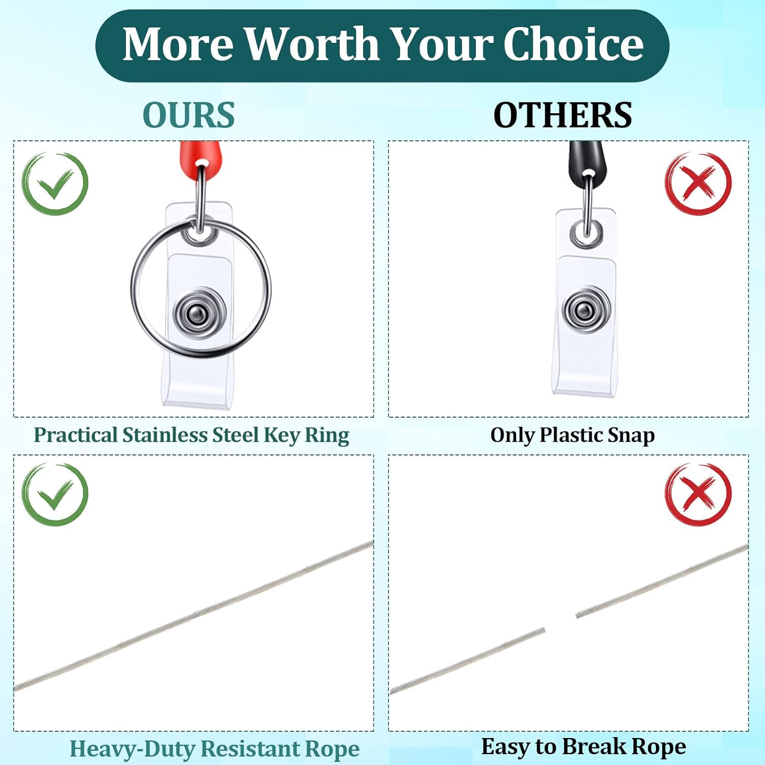 - Reliable Material: name badge clips retractable are chromed metal housing with quality plastic covers, matte texture plastic round reel case; Fiber cord was made of wear resistant polyester material that is compact and sturdy, strong enough to reliably retract, will not lose any cards or keys