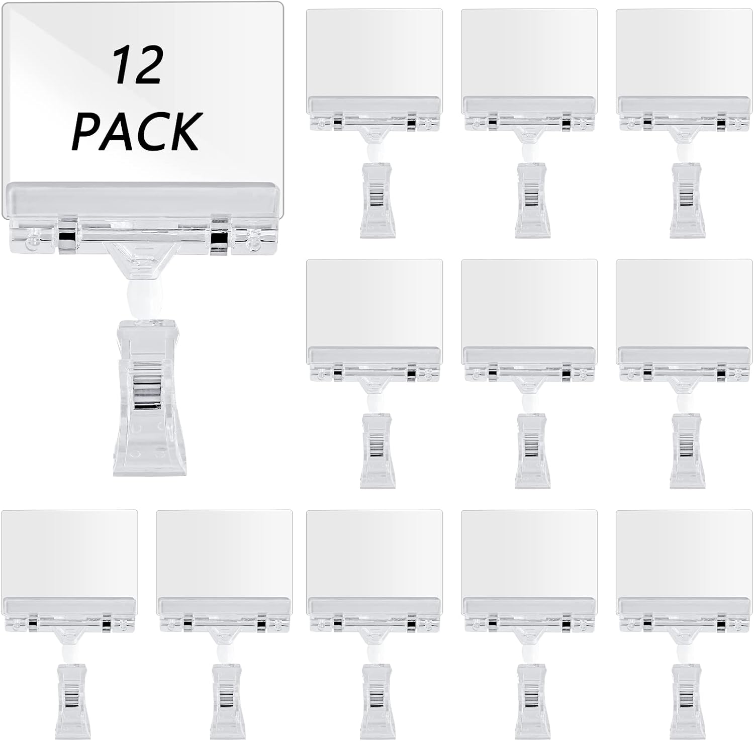 Biaungdo 12 Pcs Rotating Clip Swivel Sign Holder, Clear Rotatable Sign Holder with Double Clip Design, PVC Card Protector for Shelves, Store, Business, Exhibition