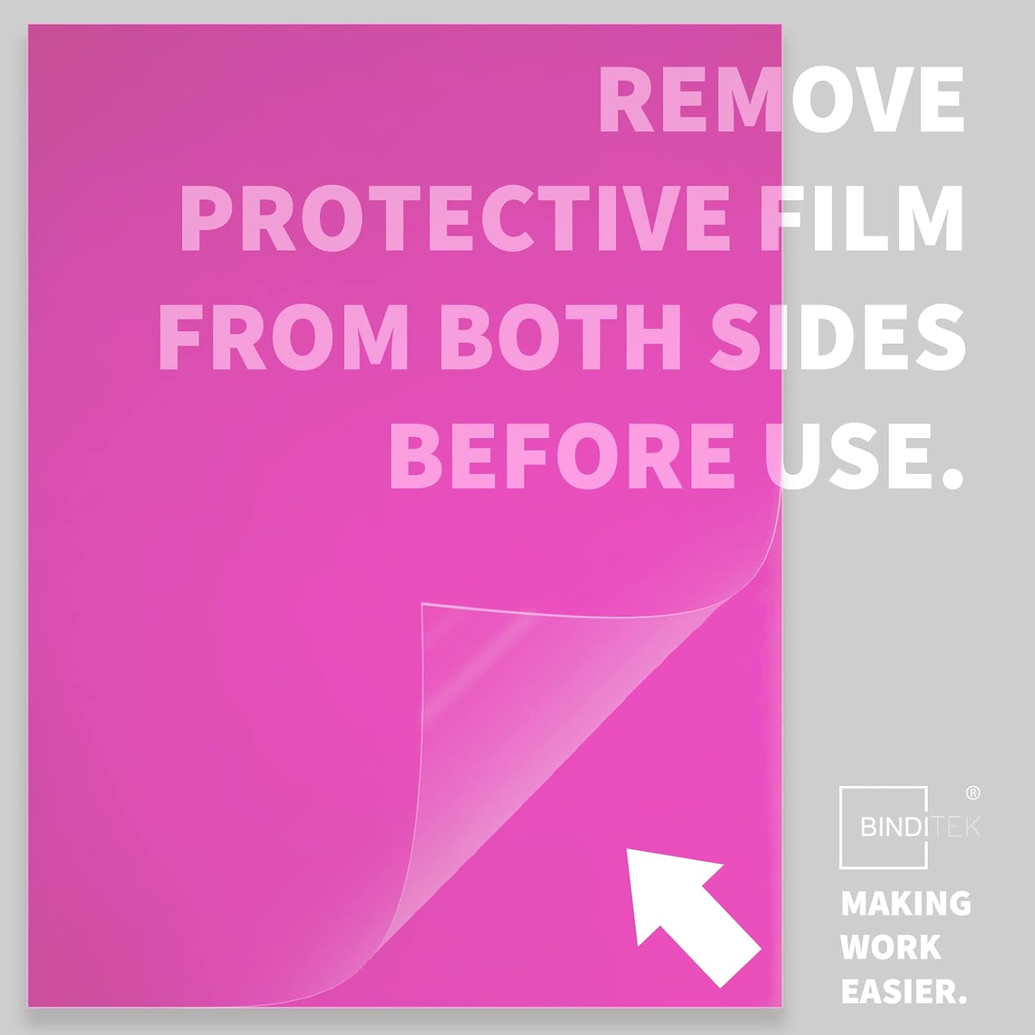 - PVC Binding Covers with Protective Film: Each colored binding covers came with a protective cover on each side, make sure each binding sheet is not scratched when arrived and store for a long time. (Attention: The protective film should be removed before use.)