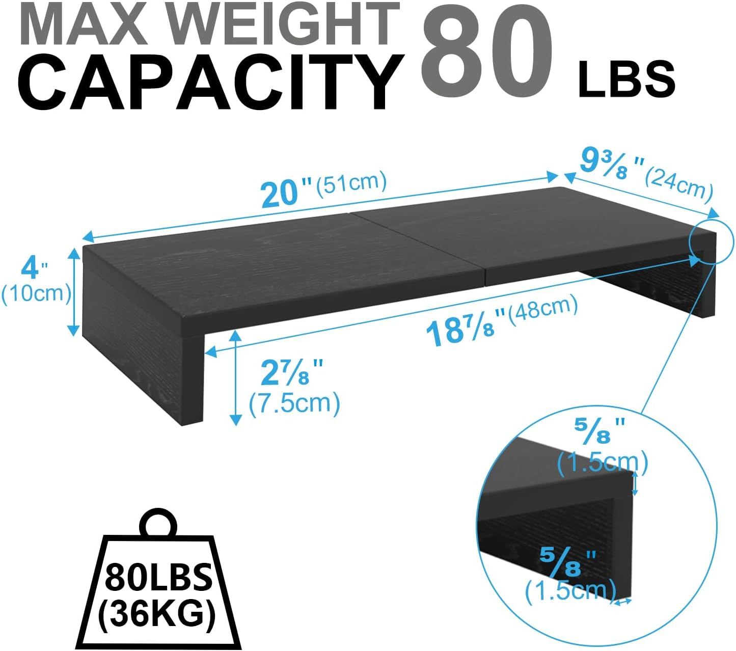 TEAMIX 2 Pack Monitor Stand Riser-20 inch, Black Desktop Stand for PC/TV/Laptop/Printer, Keyboard Shelf Organizer Wood Monitor Riser with Storage