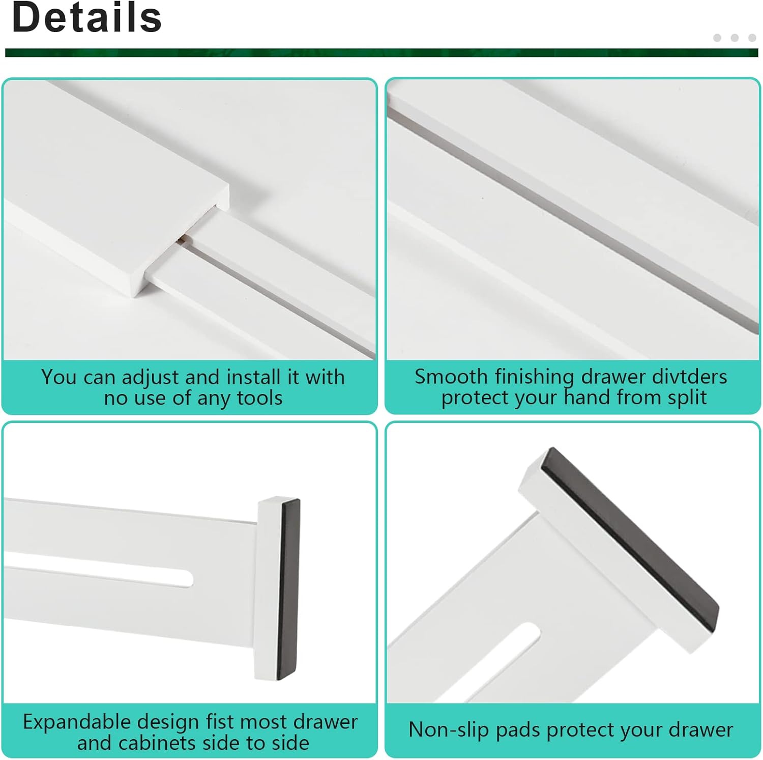 - Adjustable Drawer Dividers: Adjustable drawer dividers range from 11.8-17 inches in length; fits easily in most drawers to keep your belongings organized and easy to access