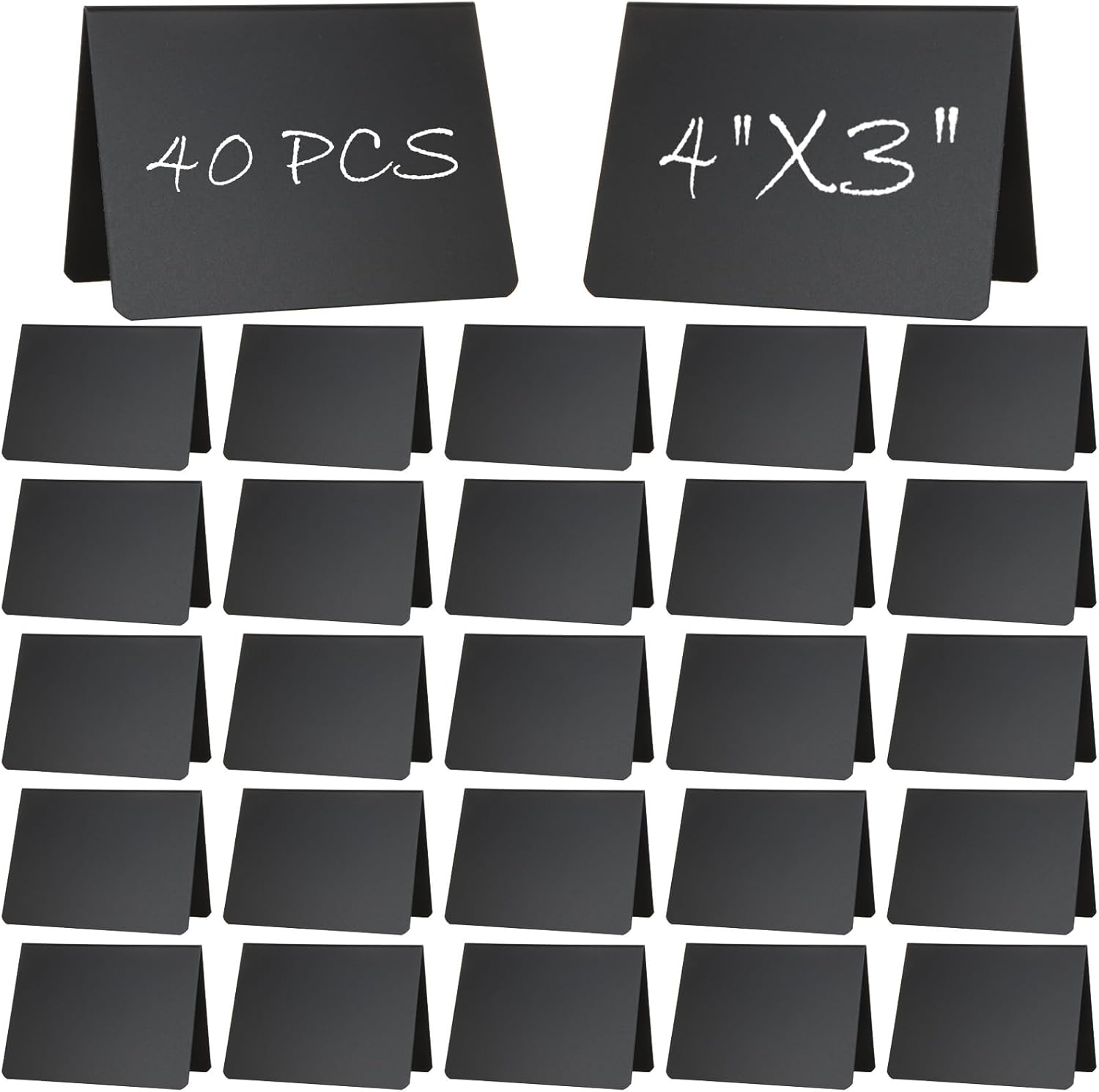- 40 CHALKBOARD SIGNS: The package includes 40 reusable black mini chalk board that measure approximately 4 x 3 inches and are lightweight and easy to carry and use without taking up a lot of table space; Great as a menu card or price tag