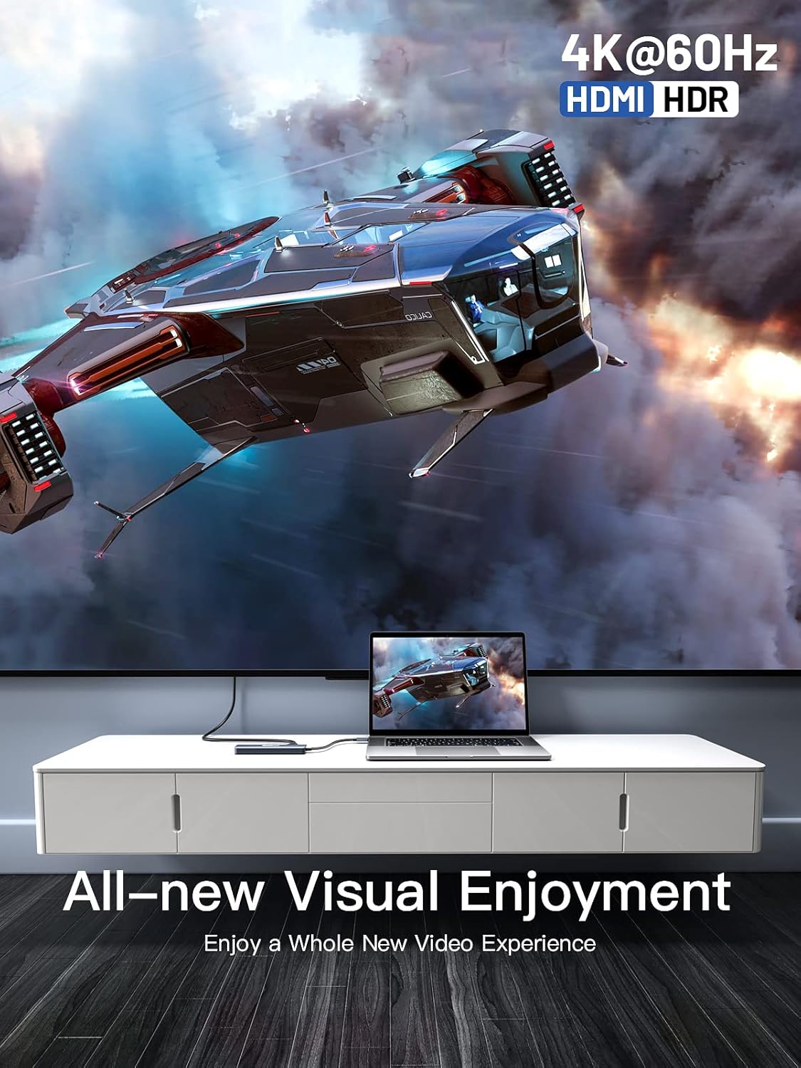 - 4K@60Hz USB C TO HDMI ADAPTER:This USB C HDMI hub support 4K@60Hz high refresh, so you can easily connect USB C-enabled devices to any HDMI TV or display, ideal for business meetings, presentations, and gaming