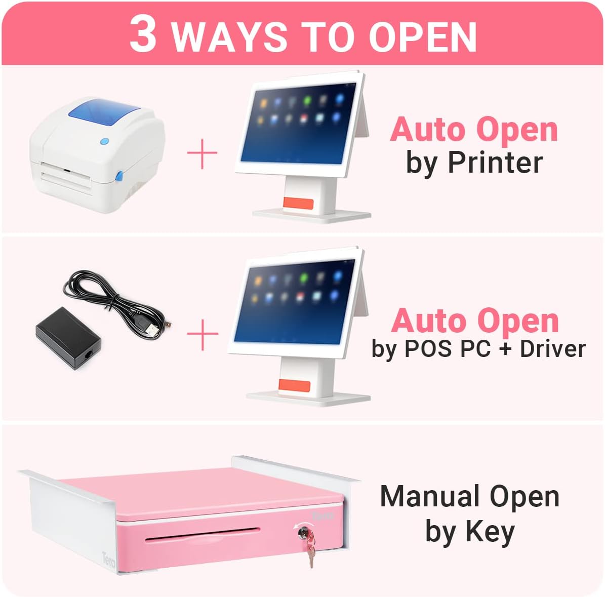 - Seamless Integration: Connect the cash drawer to a receipt/ printer via RJ12 cable, then link the printer to your POS for automatic tray operation. Compatible with major printer brands. Suitable for home and commercial use like stores, supermarkets.