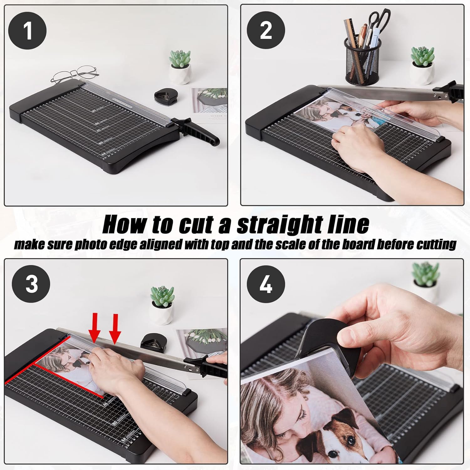 - How To Cut A Straight Line : Place the paper on the board and make sure the edge of the paper is aligned with the scale; Moreover Align the top of the paper with the top of the cutting board and press the guard rail to prevent paper move away when cutting