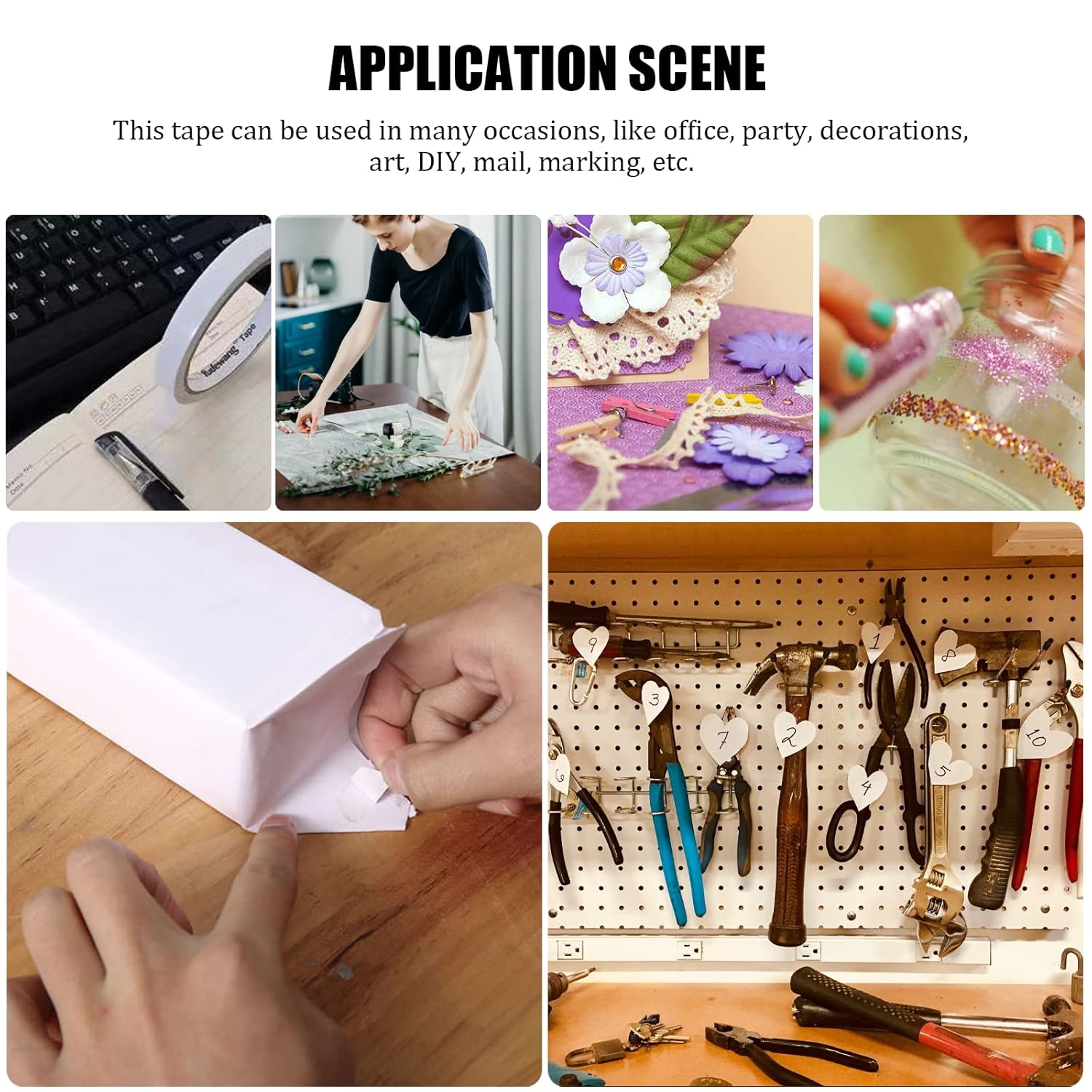 - Wide Applications: Fabric tape double sided tape roller (as cinta doble cara para manualidades, as score tape, as scrapebook tape) can be widely used for cardstocks, sticking, repairing work, mail sealing, ribbon, origami art, cards making, DIY craft projects, gifts wrapping, wallpaper, documents, stamps, scrapbook supplies, craft supplies, balloons, mounting photos, card making supplies, ribbon clip, mark, party decorations, gifts packing, sewing, woodworking, wedding site, ribbon clip, etc.