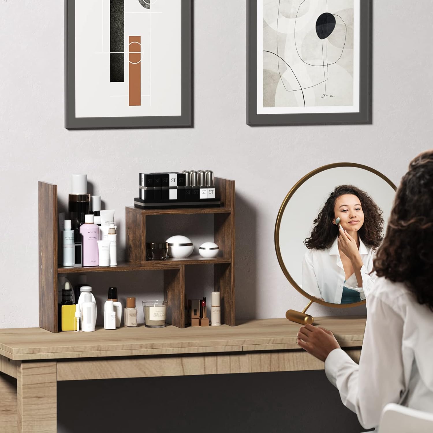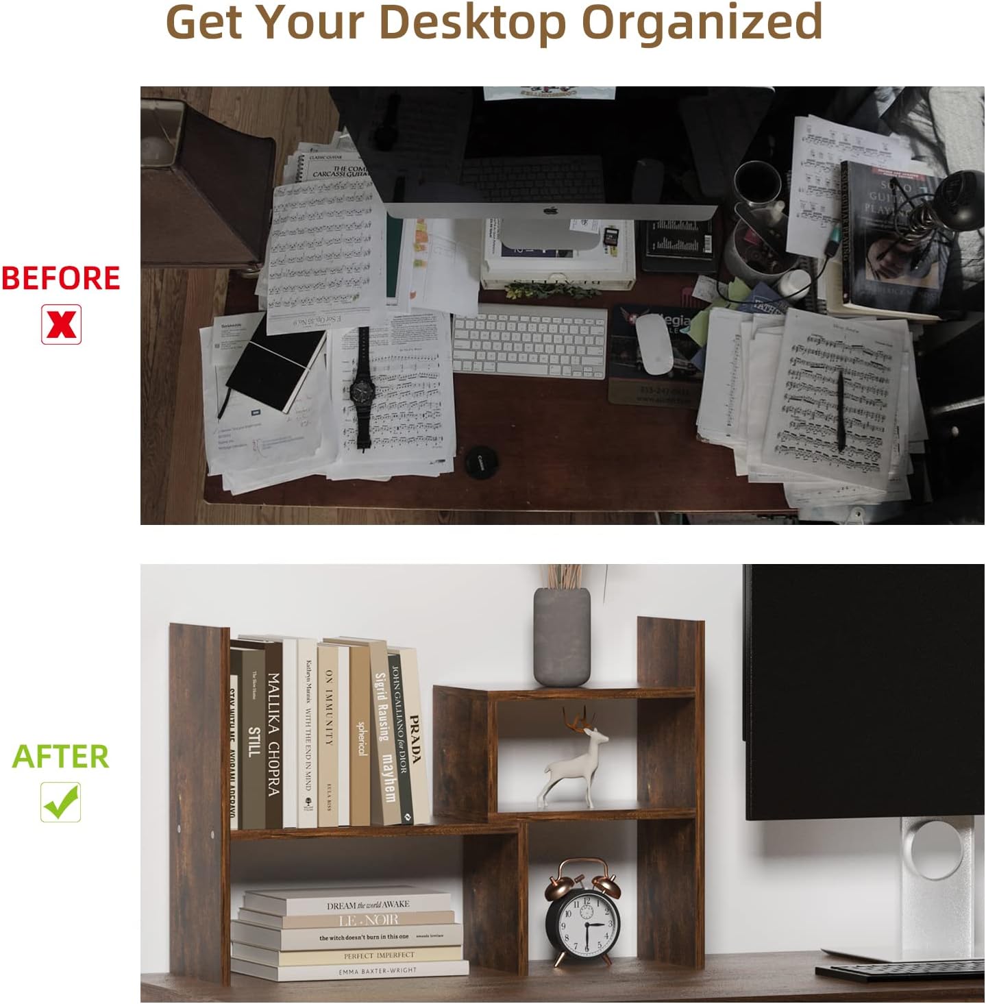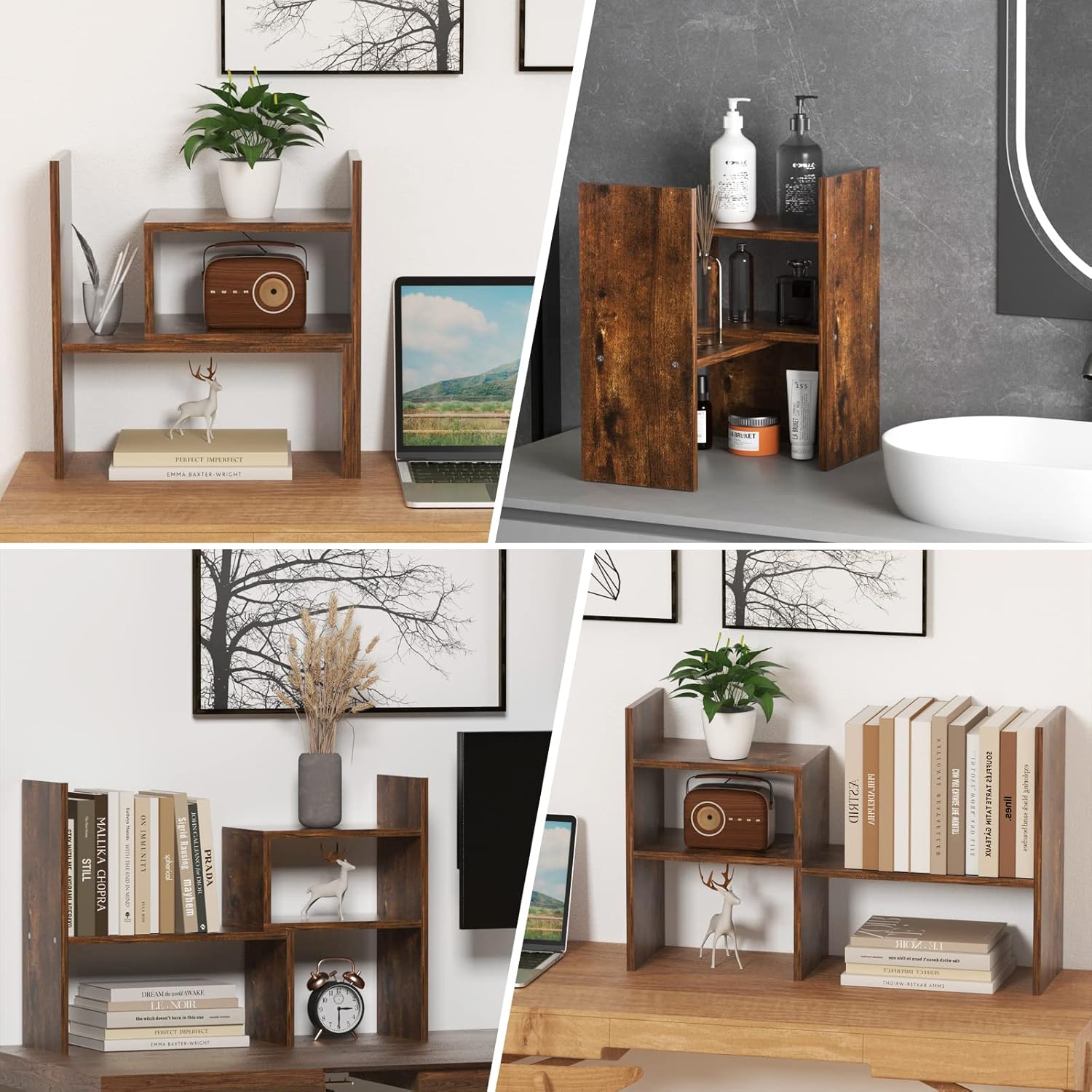 TY ARTS & CULTURE - Expandable Wood Desktop Storage Organizer Multipurpose Desk Bookshelf Display Shelf Rack Counter Top Bookcase for Office Home | Natural Brown