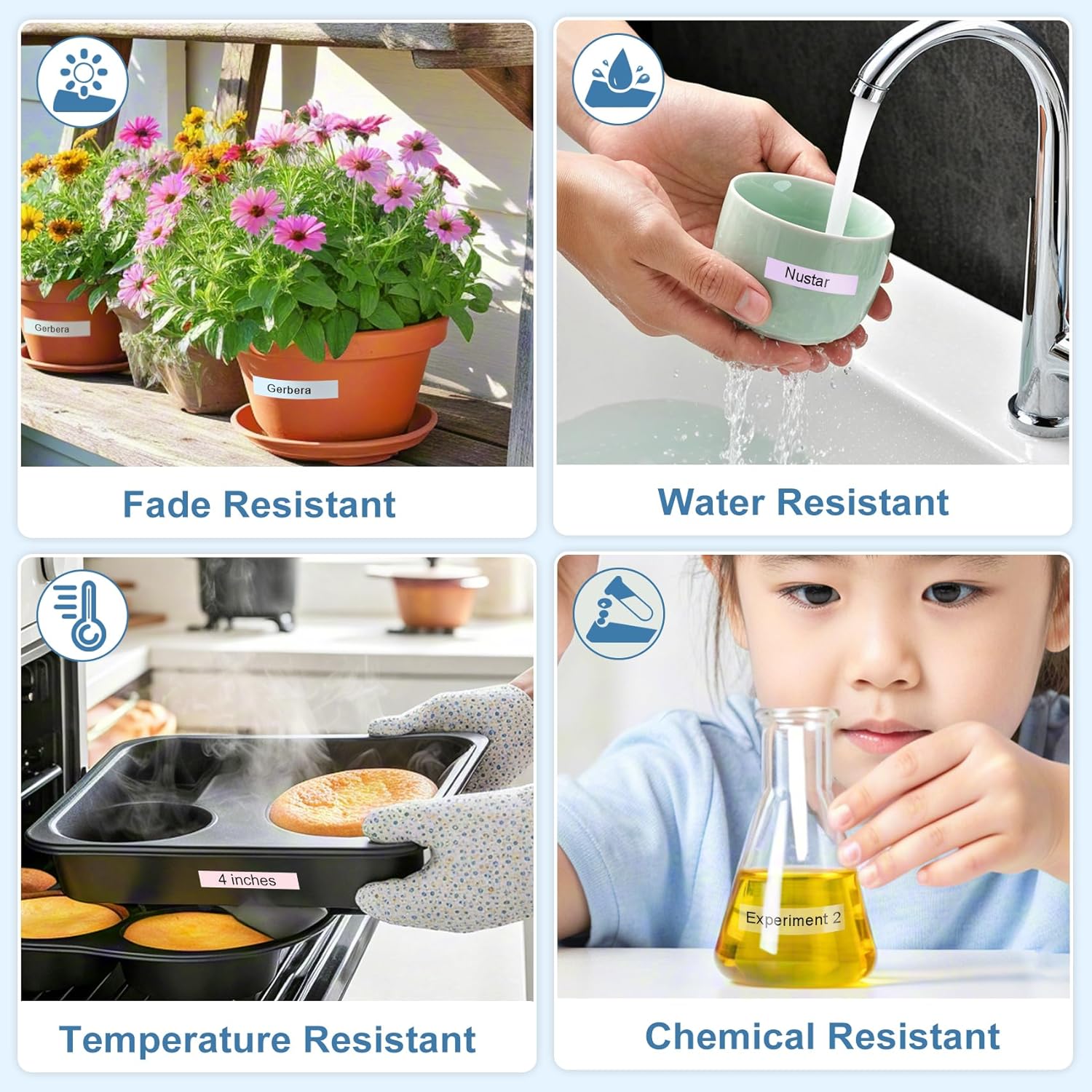 - TZe laminated label tapes are widely used indoors and outdoors. Home, Office, Library, School, Laboratory, Hospital, Hotel, Restaurant, Factory, Warehouse, Telecom Industry, Electric Power industry, Water heaters, etc