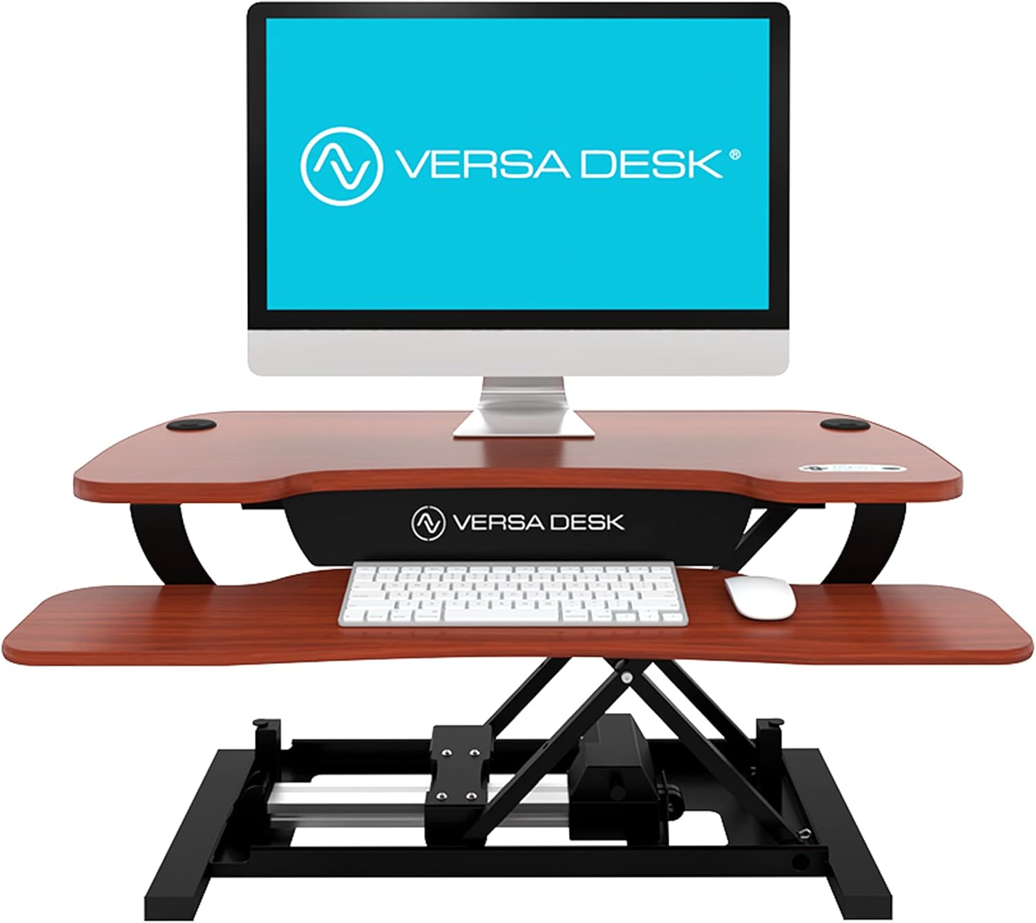 VERSADESK® PowerPro™ Elite 48” x 24” Standing Desk Converter | 48 Inch Electric Height Adjustable Sit to Stand Desk Riser w/Keyboard Tray & USB Hub - Ergonomic Workstation for Home & Office, Cherry