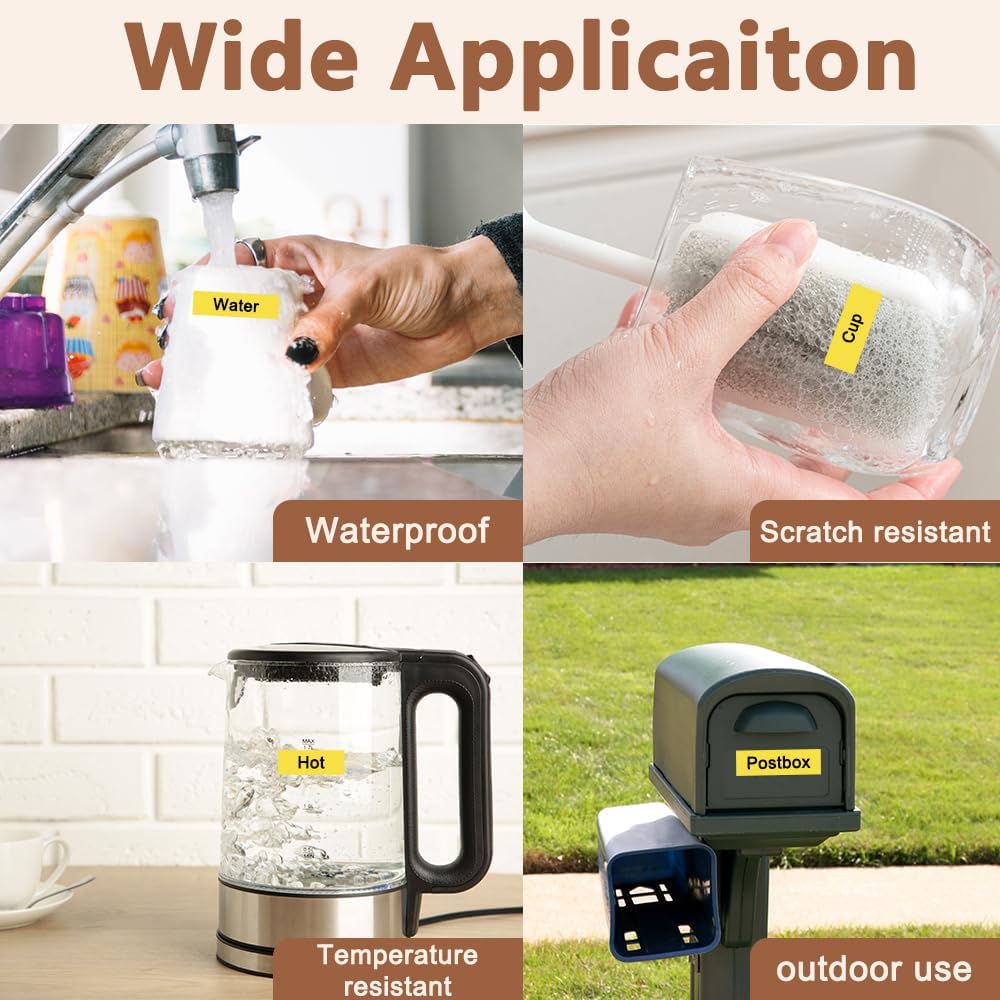 - Size - 1" ( 24mm ) x 26.2' ( 8m ) each 24mm label tape. Color - Black letter on yellow tape