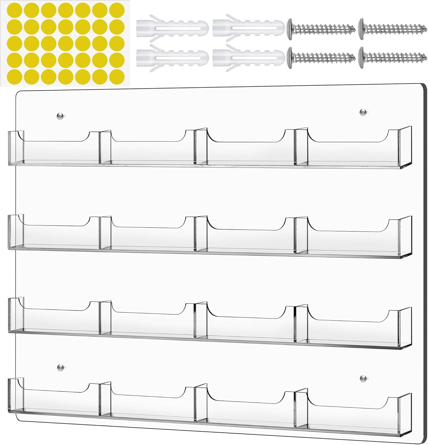 TURSTIN Business Card Holder Wall Mount Clear Sticker Display Marketing Holder Acrylic Business Card Stand Multi Pocket Rack Organizer Space Saver for Home Office (16 Pockets)