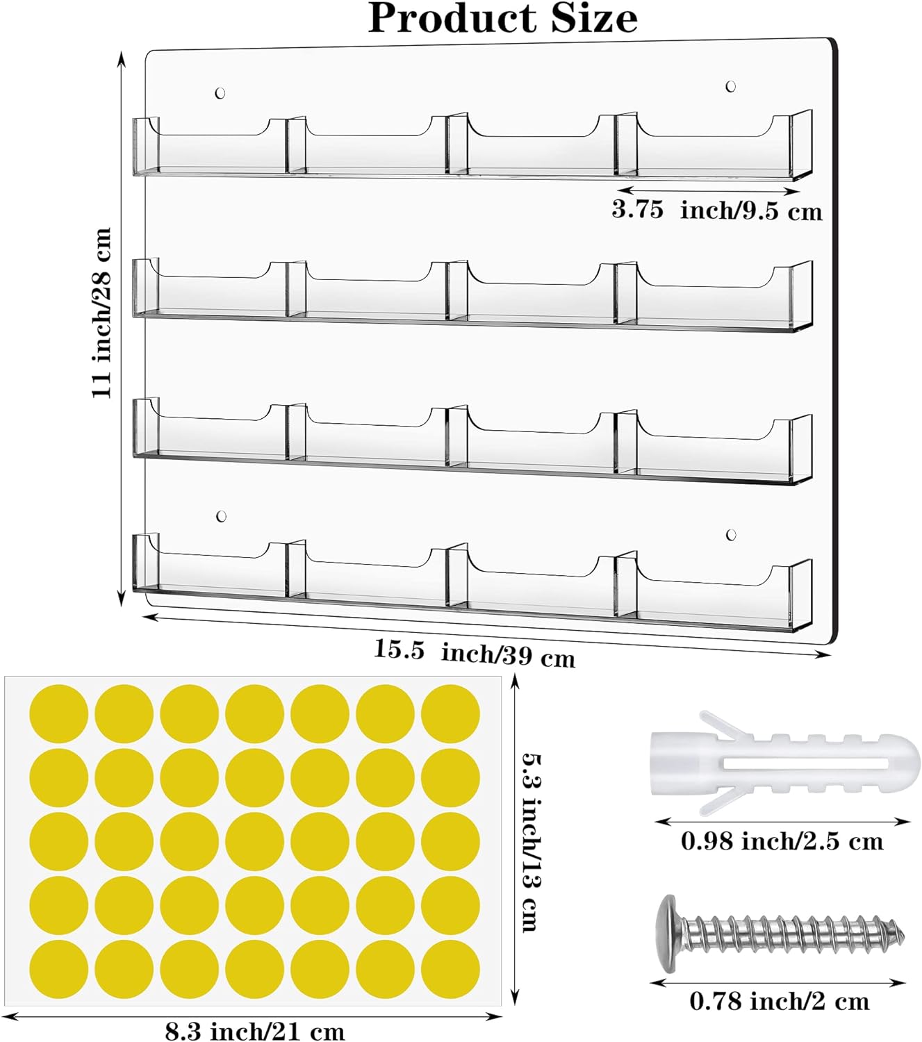 - Multi-function: the wall mount clear sticker display comes with 16 pieces of pockets, the card holder measures about 15.5 x 11 inches, the size of each pocket is about 3.75 x 0.75 x 0.75 inch, large in size, can be used to store a large number of items, such as stationery, office supplies, time cards, business cards, keys and any other small items