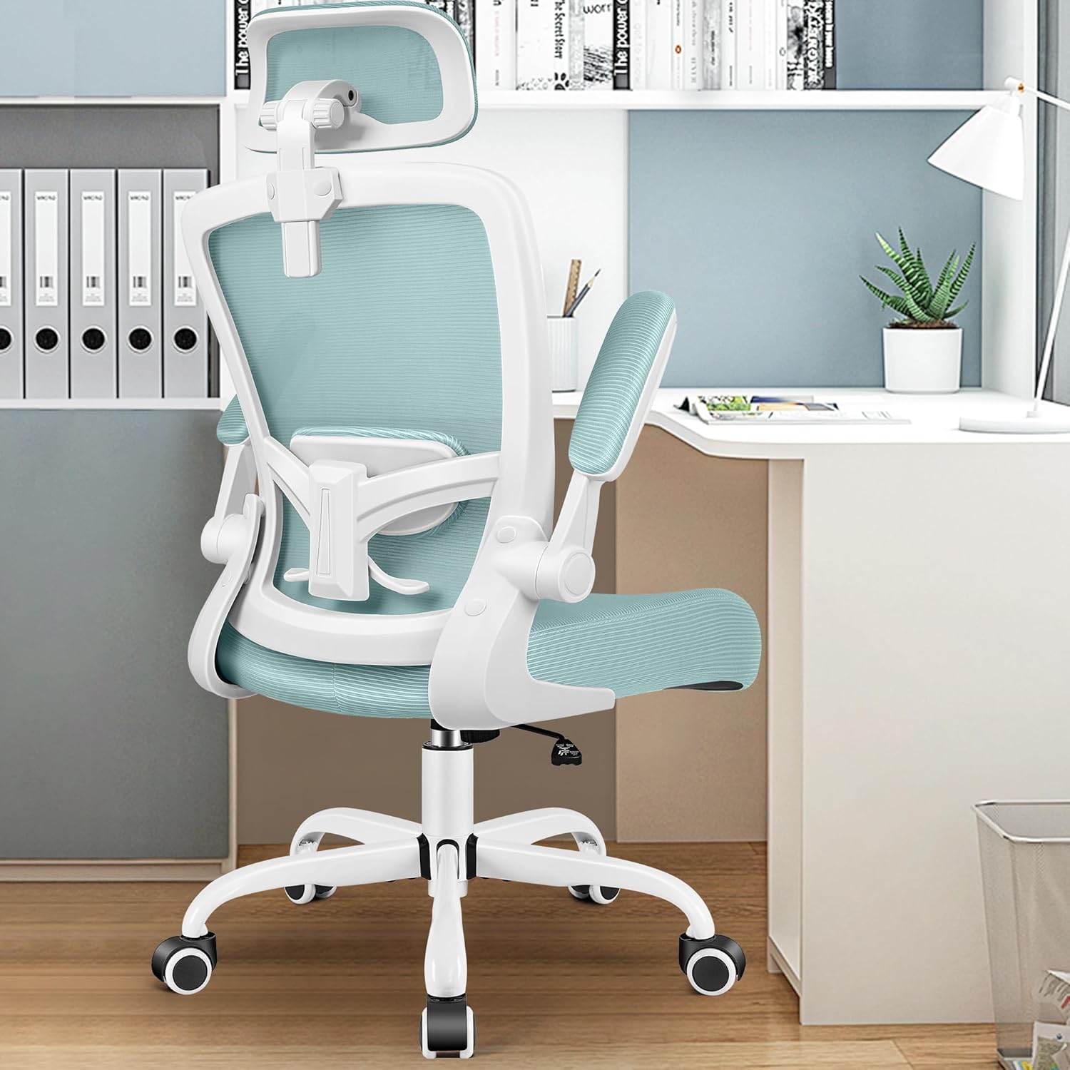 FelixKing Ergonomic Office Chair, Headrest Desk Chair Office Chair with Adjustable Lumbar Support, Home Office Swivel Task Chair with High Back and Armrest, Adjustable Height Gaming Chair(Light Blue)