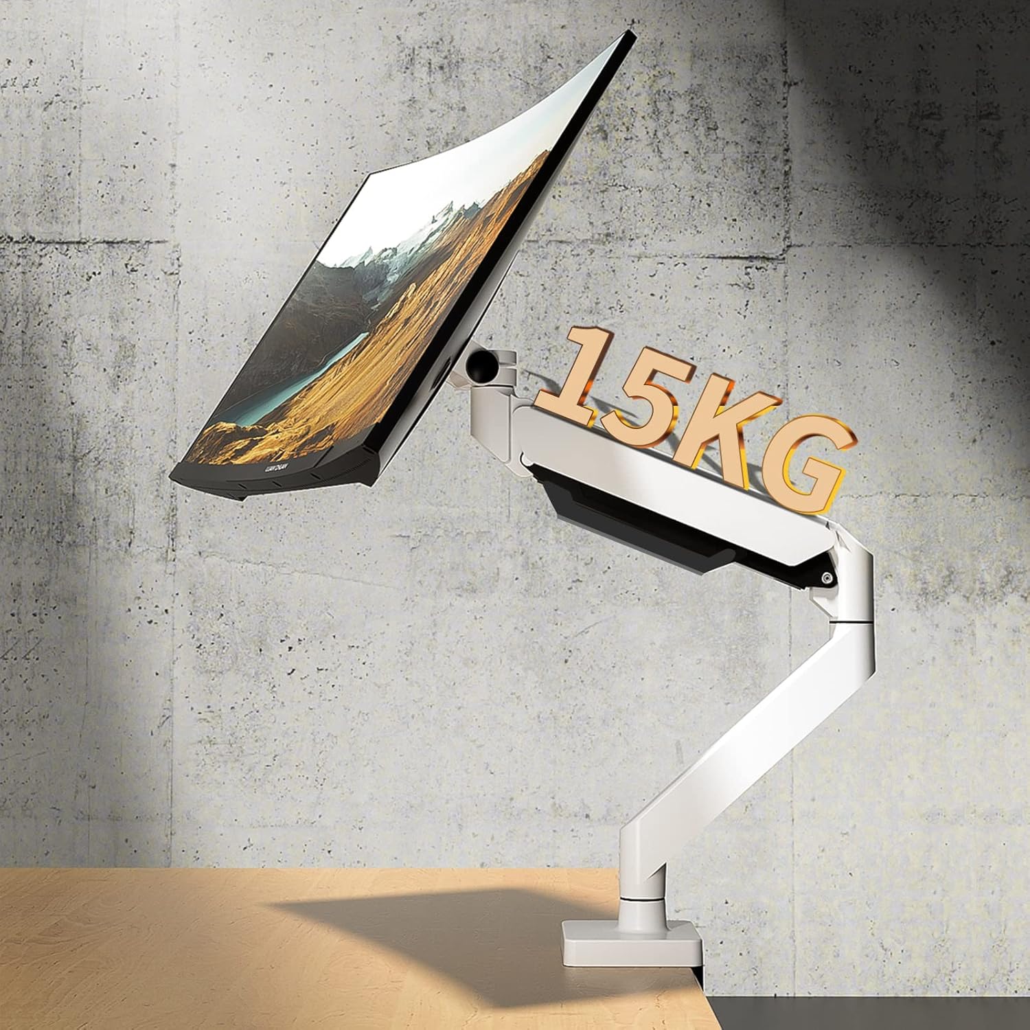 White Ultrawide Single Monitor Arm Heavy Duty Desk Mount Computer Stand for 17 to 45 inch Adjustable Gas Spring Bracket, Screen up to 30lbs with VESA max 100x100mm M7P
