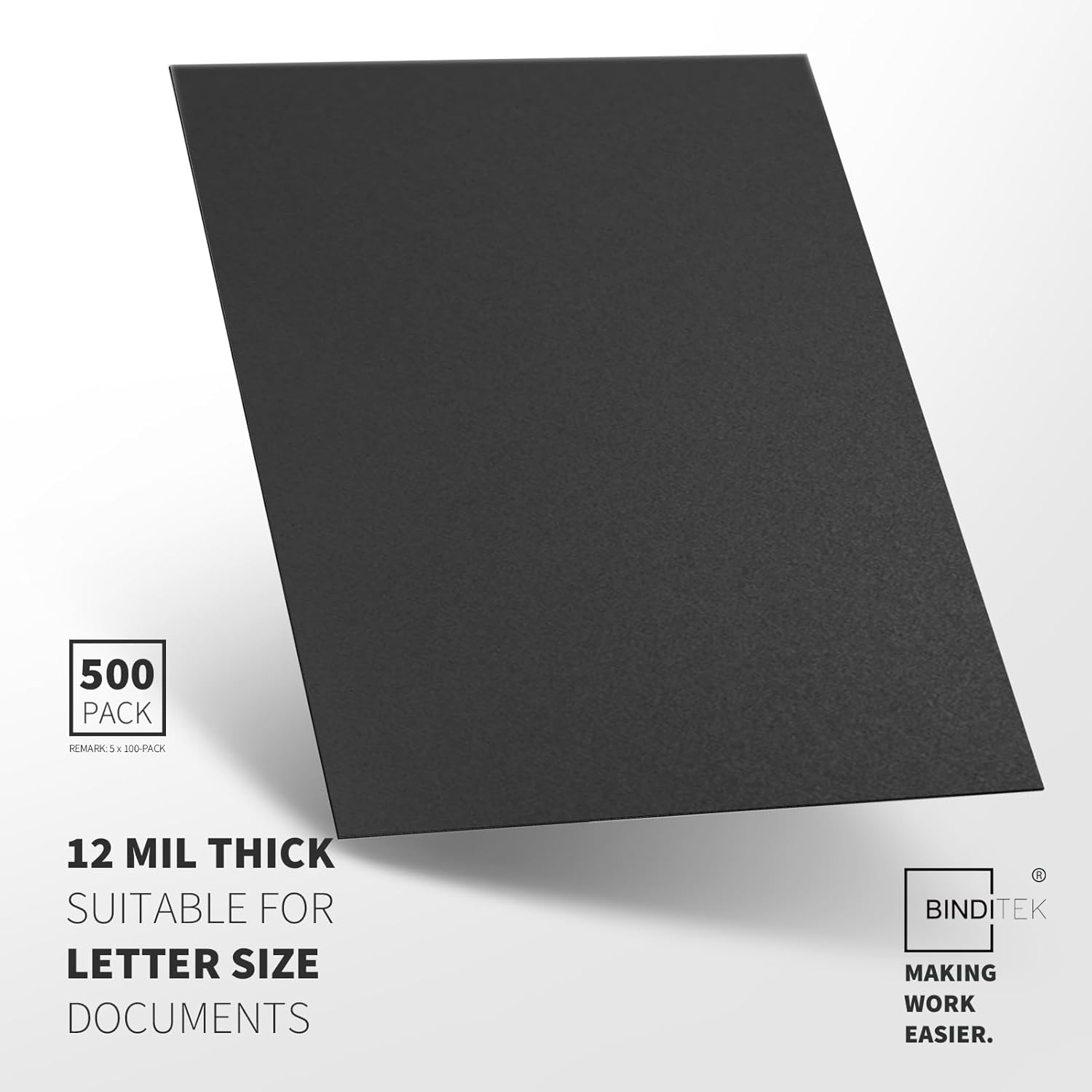 Binditek 500 Pack 12 Mil Sand-Textured Polycover - Midweight for Business Reports and Proposals - Lightly Sanded Finish - with Square Corners, Un-Punched, Black Color, Office Supplies