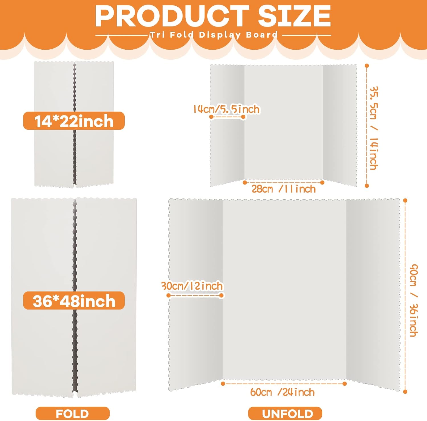 - Suitable Size to Use: each white trifold science board measures approx.14 x 22 inch, the size of 14 x 22 inches is the size of display boards when unfolded, please make sure it is the size you want