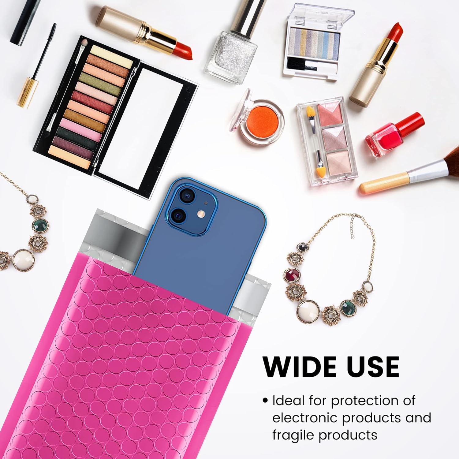 - Perfect Size Pink 000 Bubble Mailers: The small bubble mailers outer size is 4x8 inch, while the inner size is 4x7 inch. It is very suitable to transport for jewelry, makeup, cards, phone case, Lips, photos,handcraft and more. Great for small business packing,shipping gifts cushioning mailer.
