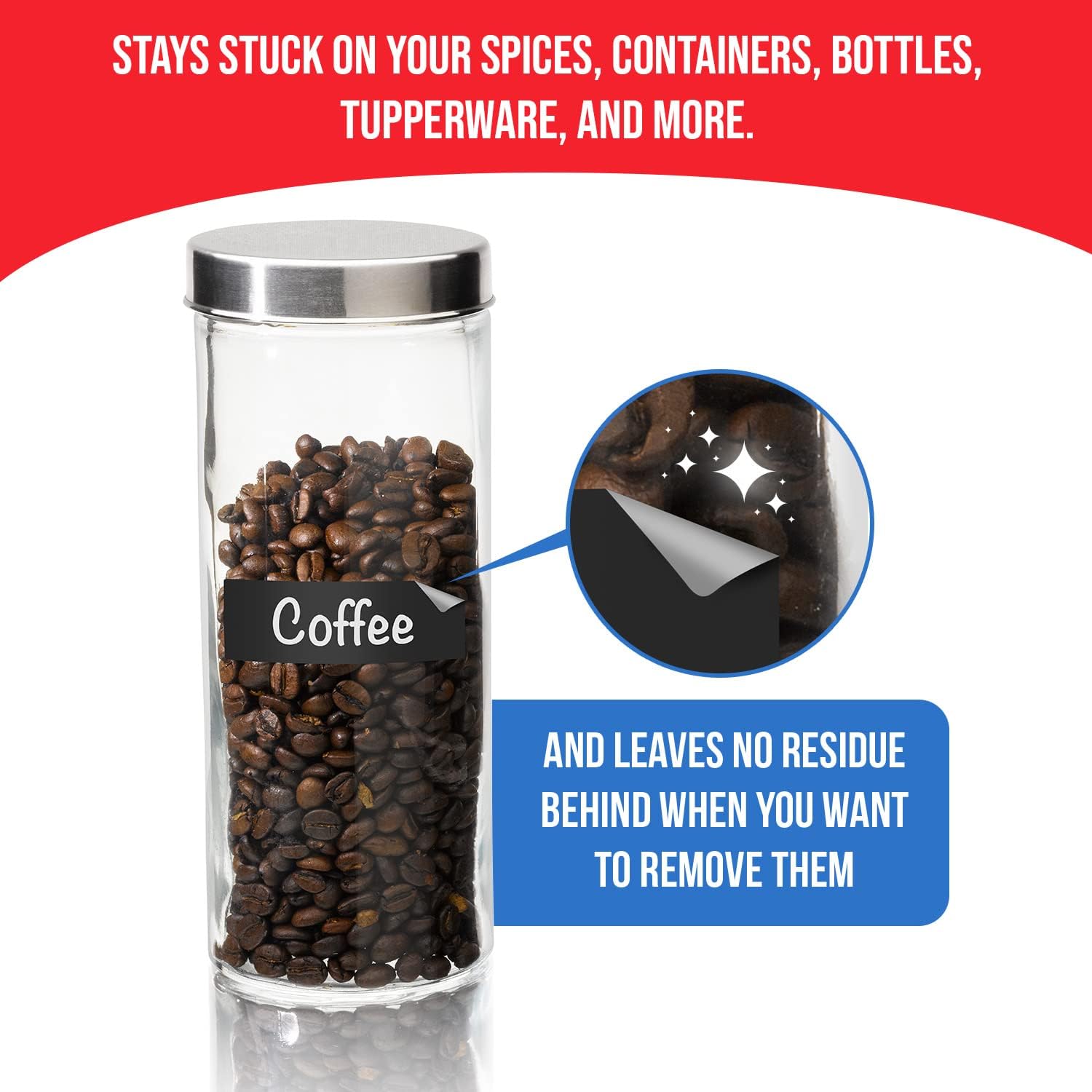 - Stays Stuck On - Won't fall off your containers easily. MESS Reusable and Erasable labels stay on your containers and remove with no residue meaning less cleaning for you.