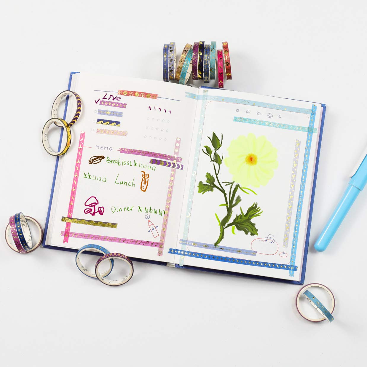 - VIBRANT DESIGN: This foiled washi tape is designed by professional Japanese designers. Various patterns can provide more choices for your use. Vibrant design gives you creativity. Your friends will be surprised by the creative gifts and decorations you make using this skinny washi tape