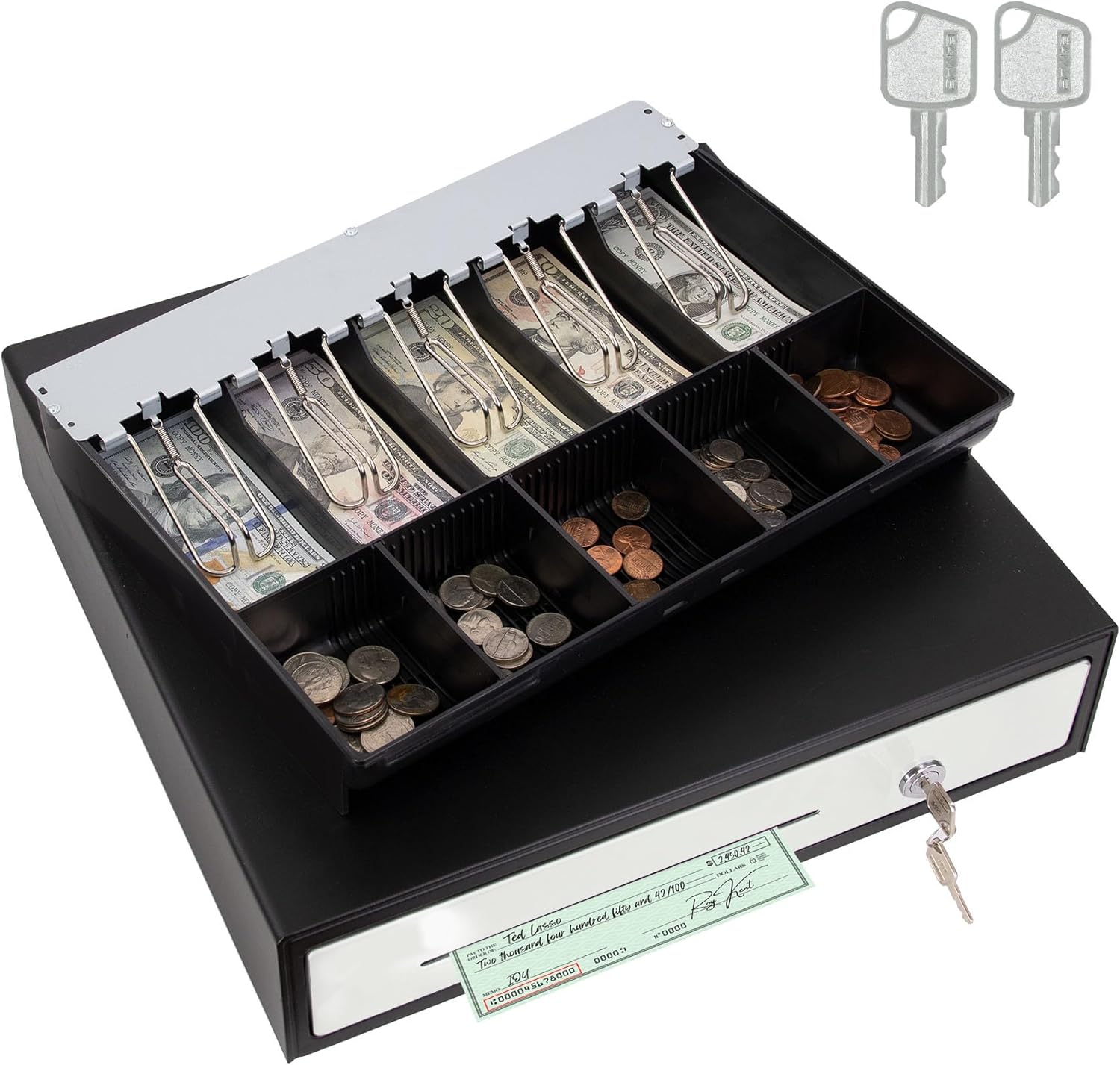 - 📦Stainless Steel Front & Movable Till: This cash drawer not only ensures security but also adds a touch of durability with its Stainless Steel Front. Customize your cash organization with the movable till, providing flexibility to adapt to your business needs.
