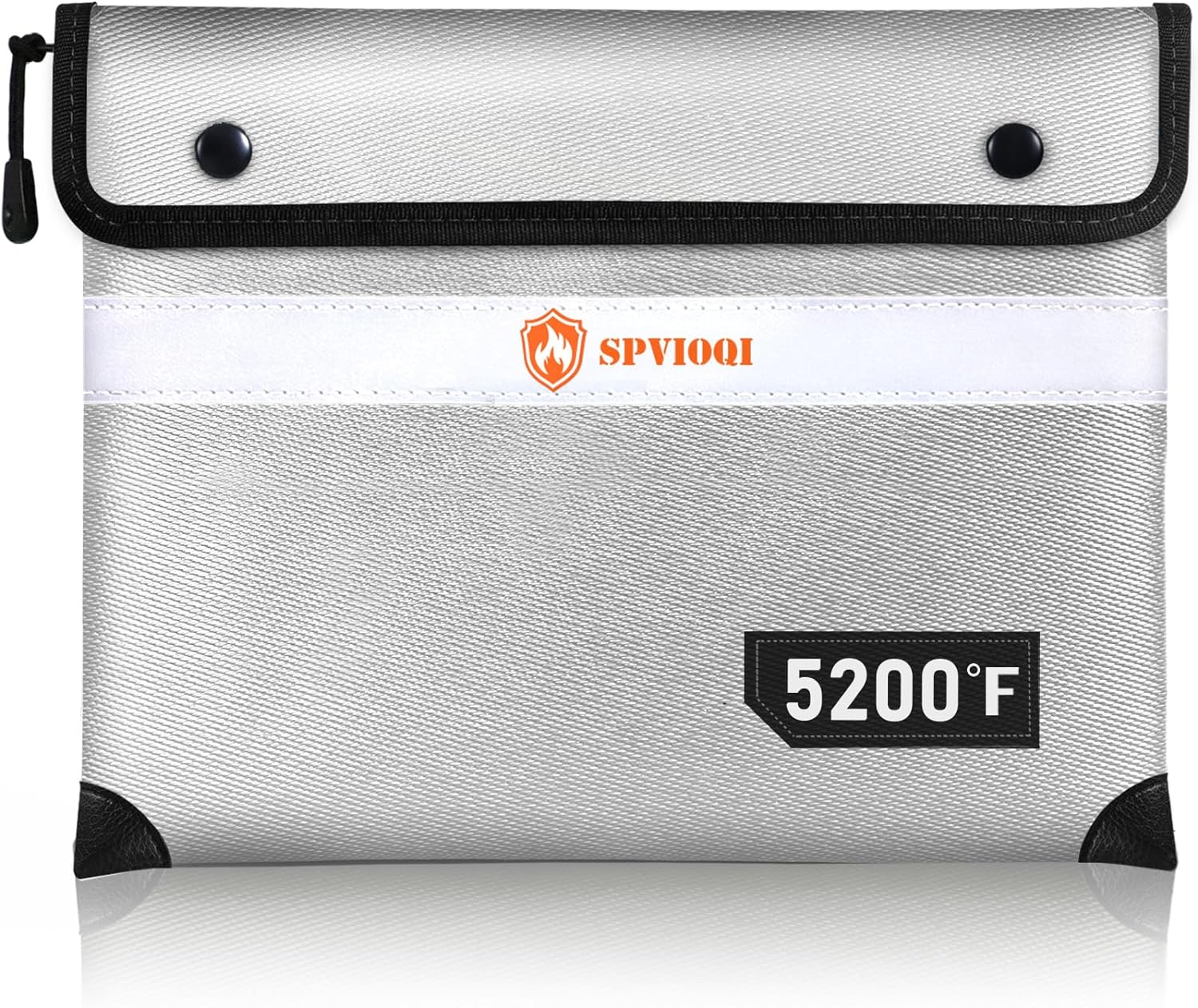 - 5200°F TOP FIRE PROTECTION: The Upgraded SPVIOQI fireproof document bag has passed Global Flammability Standards (US labs) and Vertical Combustion Testing (SGS UL94 V-1); Recommended by professional firefighters and tested in the most demanding environments; The fire proof money bag can withstand ultra high temperatures up to 5200°F; It is worth mentioning that the reflective strip of fire bag has high visibility at night, which is convenient for you to quickly find in a fire