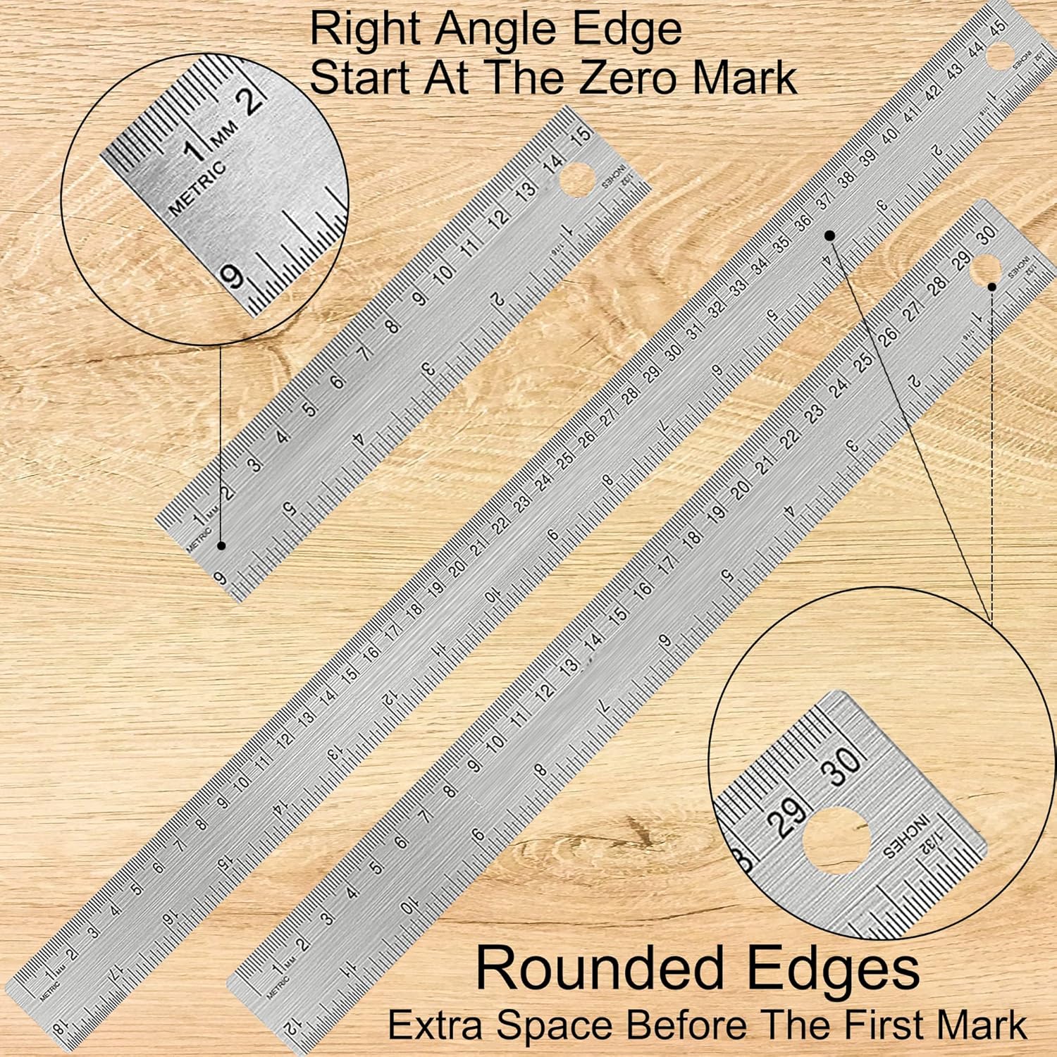 - ROUNDED, RIGHT-ANGLED EDGES - The metal rulers 6 inch are right-angled edges, the ruler edges start from the zero mark for precise measurement, and the metal rulers 12,18 inch are rounded edges, with a variety of styles for your convenience in different situations.