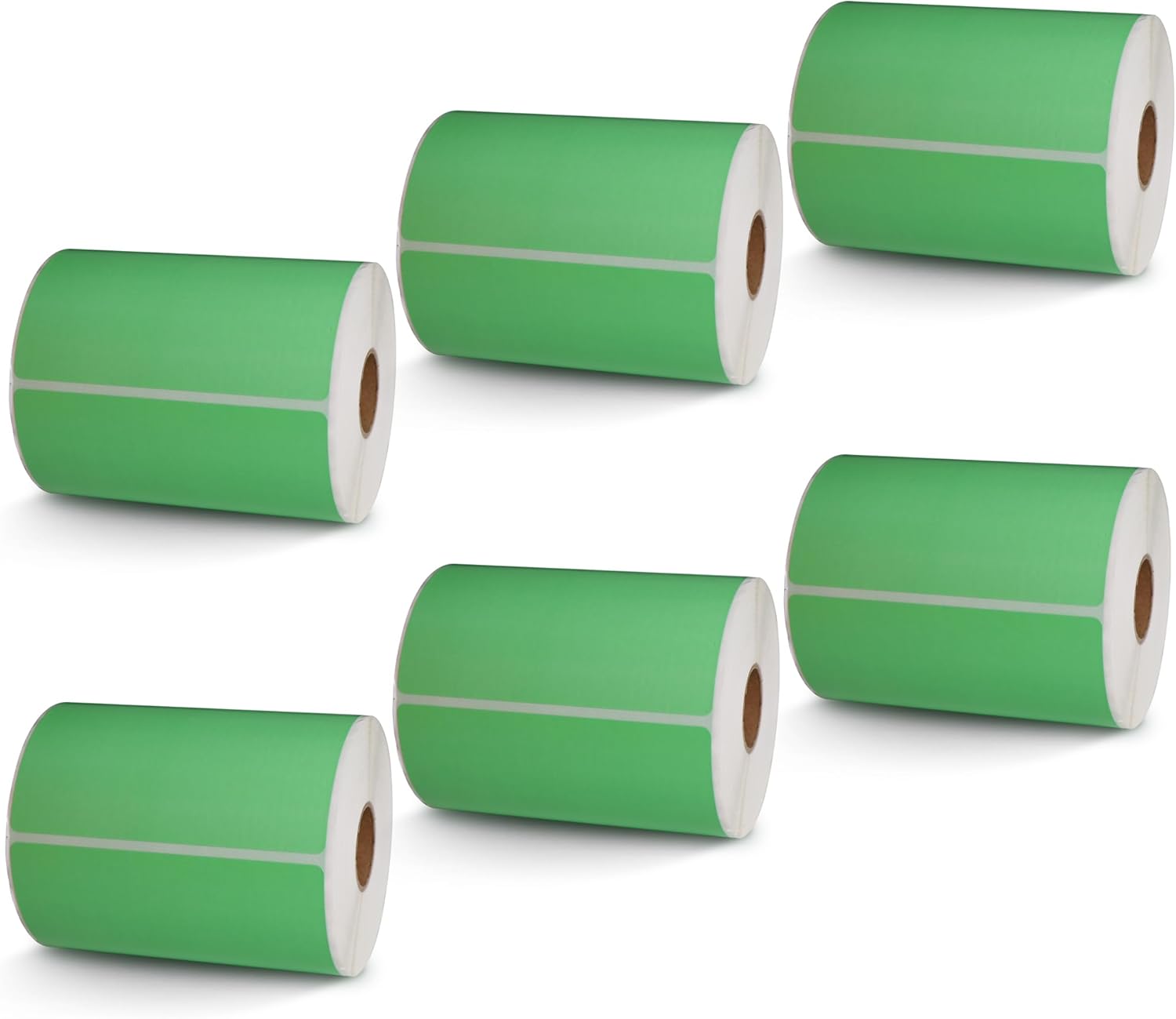BETCKEY - 4" x 4" Shipping & Large Square Labels Compatible with Zebra & Rollo Label Printer,Premium Adhesive & Perforated[Green, 6 Rolls, 2100 Labels]