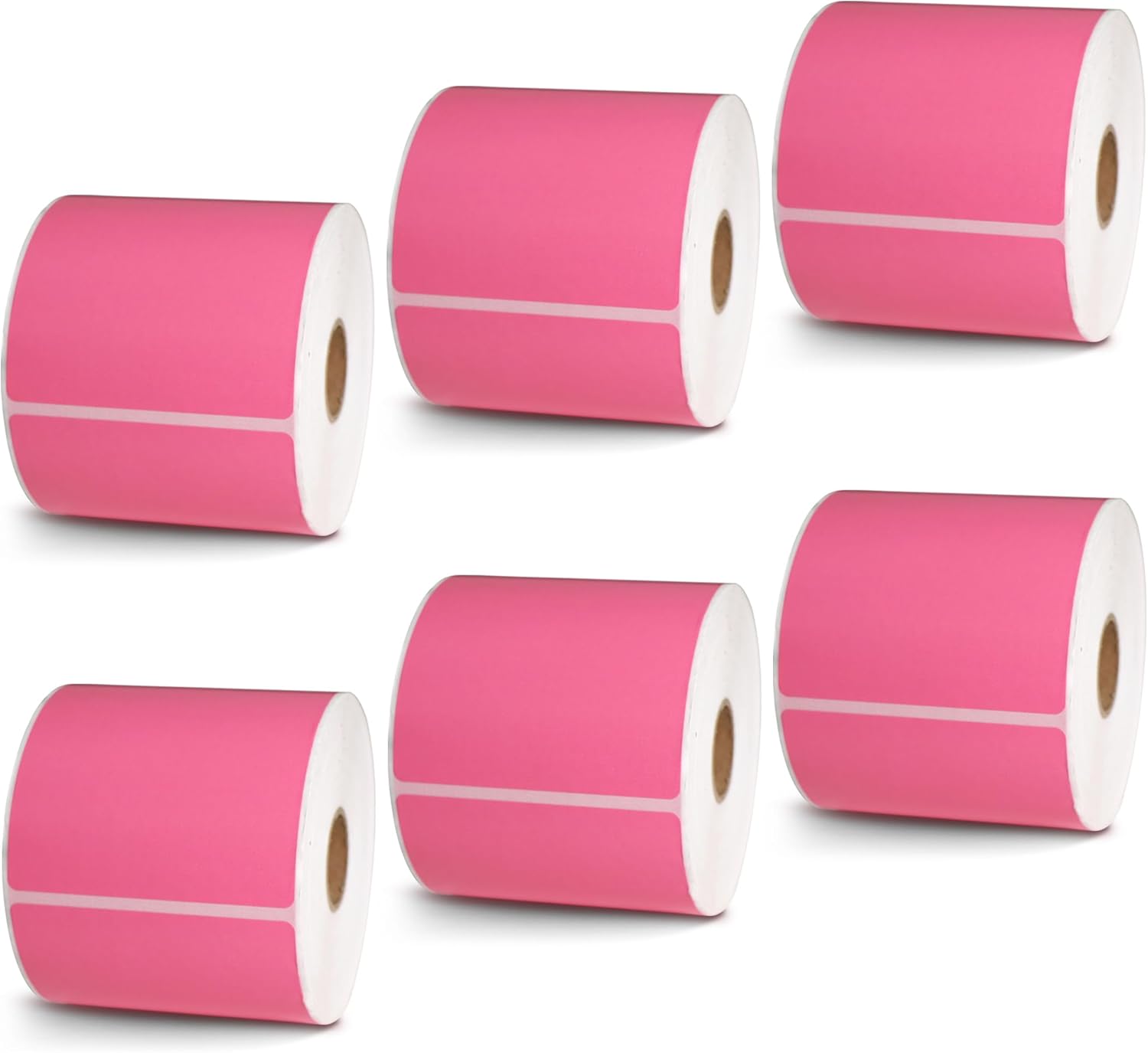 BETCKEY - 3" x 5" Multipurpose & Large Shipping Labels Compatible with Zebra & Rollo Label Printer,Premium Adhesive & Perforated[Pink, 6 Rolls, 2100 Labels]