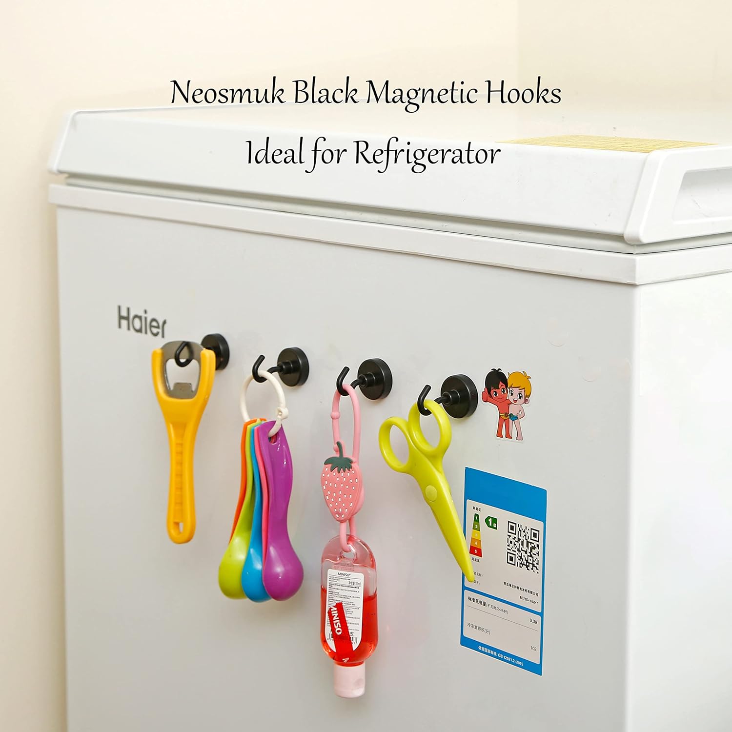 Neosmuk Magnetic Hooks, Heavy Duty Earth Magnets with Hook for Refrigerator, Extra Strong Cruise Hook for Hanging, Magnetic Hanger for Curtain, Grill(Matte Black,4 Pack)
