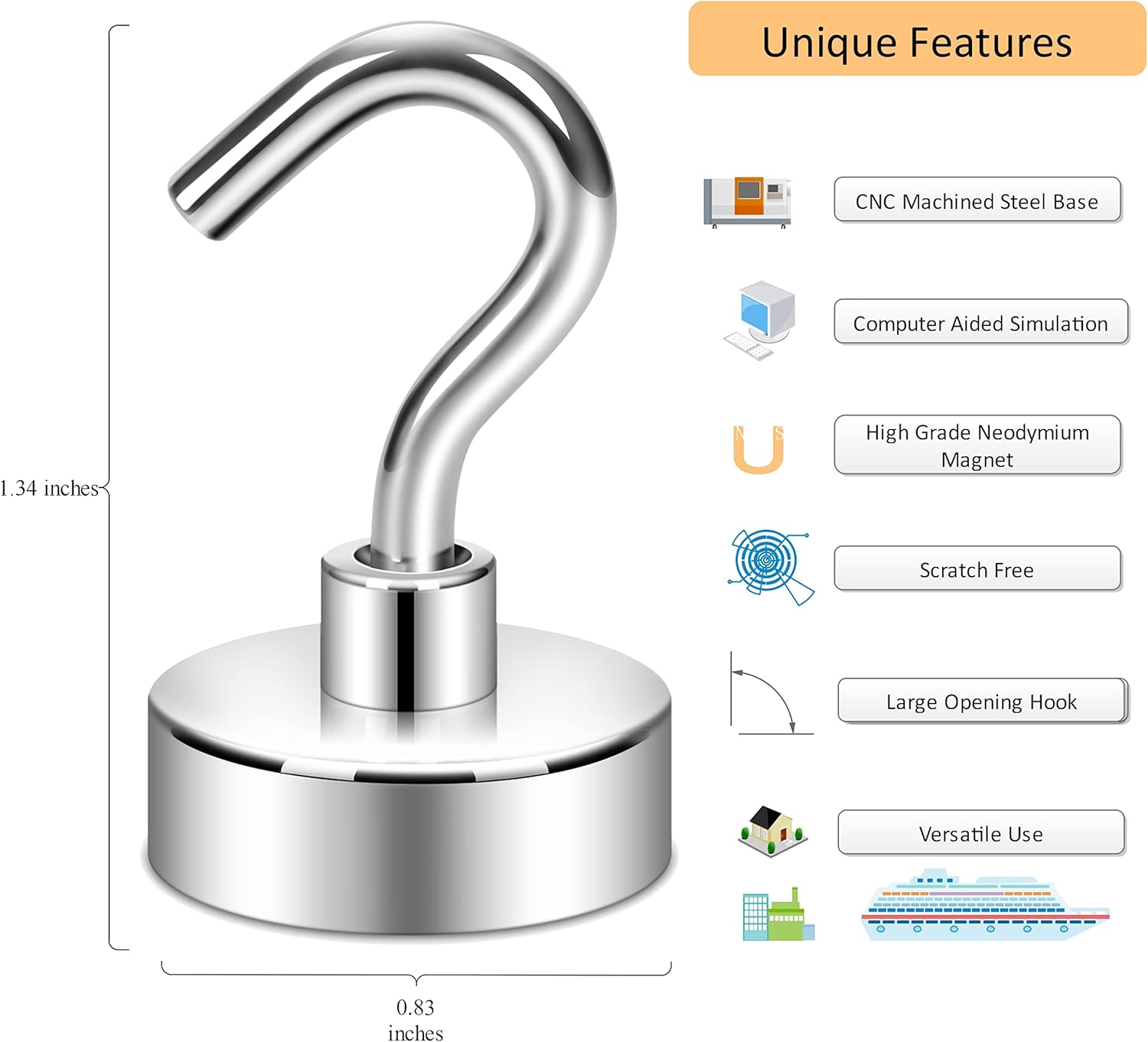 - ✔ EXCELLENT COATING- Triple layers nickel coated on metal steel CNC machined metal base greatly reinforces corrosion resistance of magnetic hook! Maintenance free, no rust!
