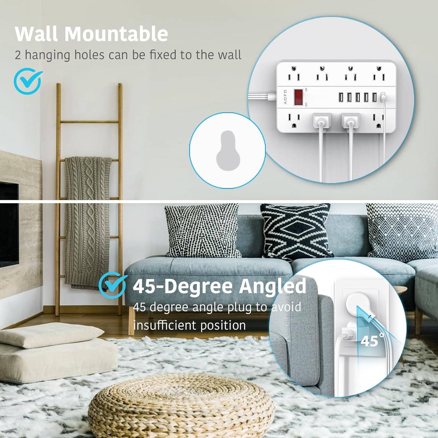- Multi Outlets Power Strip:8 AC outlets 6 USB(1USB C)power strips with 1080 joule surge protection to protect your high-end electronics from sudden power surges and spikes,integrated circuit breakers will automatically trip to protect your devices when the power is overloaded