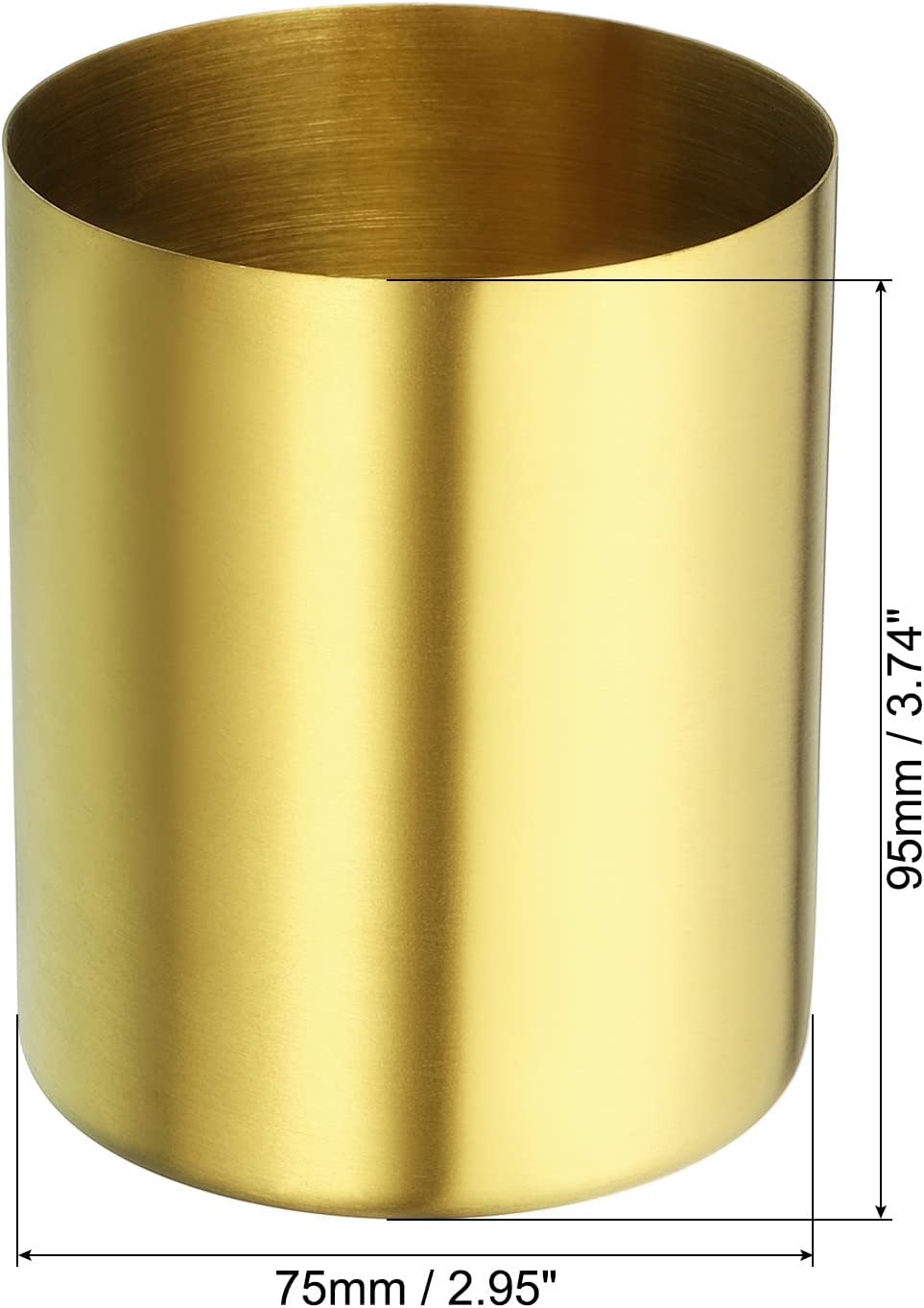 - Color: Golden; Material: Stainless Steel; Overall Size: 75 x 95mm / 2.95 x 3.74 inch (D*H); Package Content: 3 x Round Pen Organizer for Desk