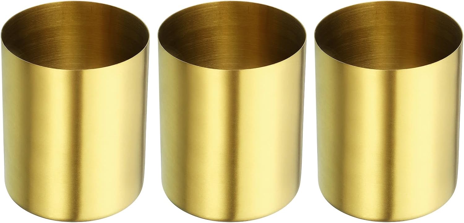 PATIKIL Pencil Holder, 3 Pack Pen Holder for Desk Stainless Steel Pencil Holders Cup Organizer Makeup Brush Holder for Desk Accessories, Golden