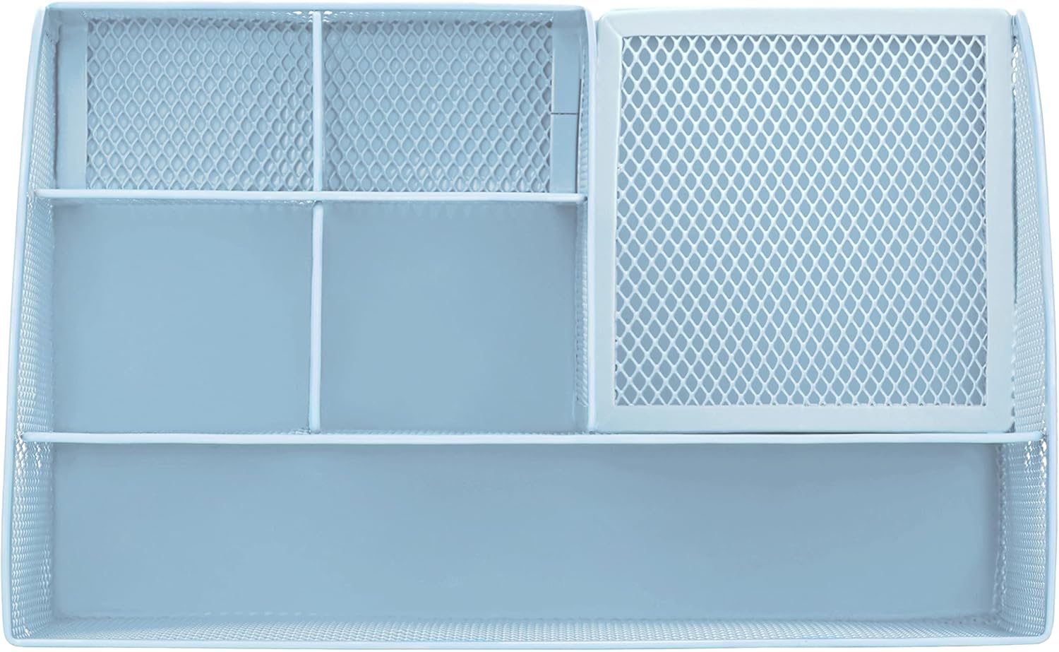 - Keep your desktop tidy and organized with this ANNOVA mesh desktop organizer featuring 7 compartments and one pullout drawer.