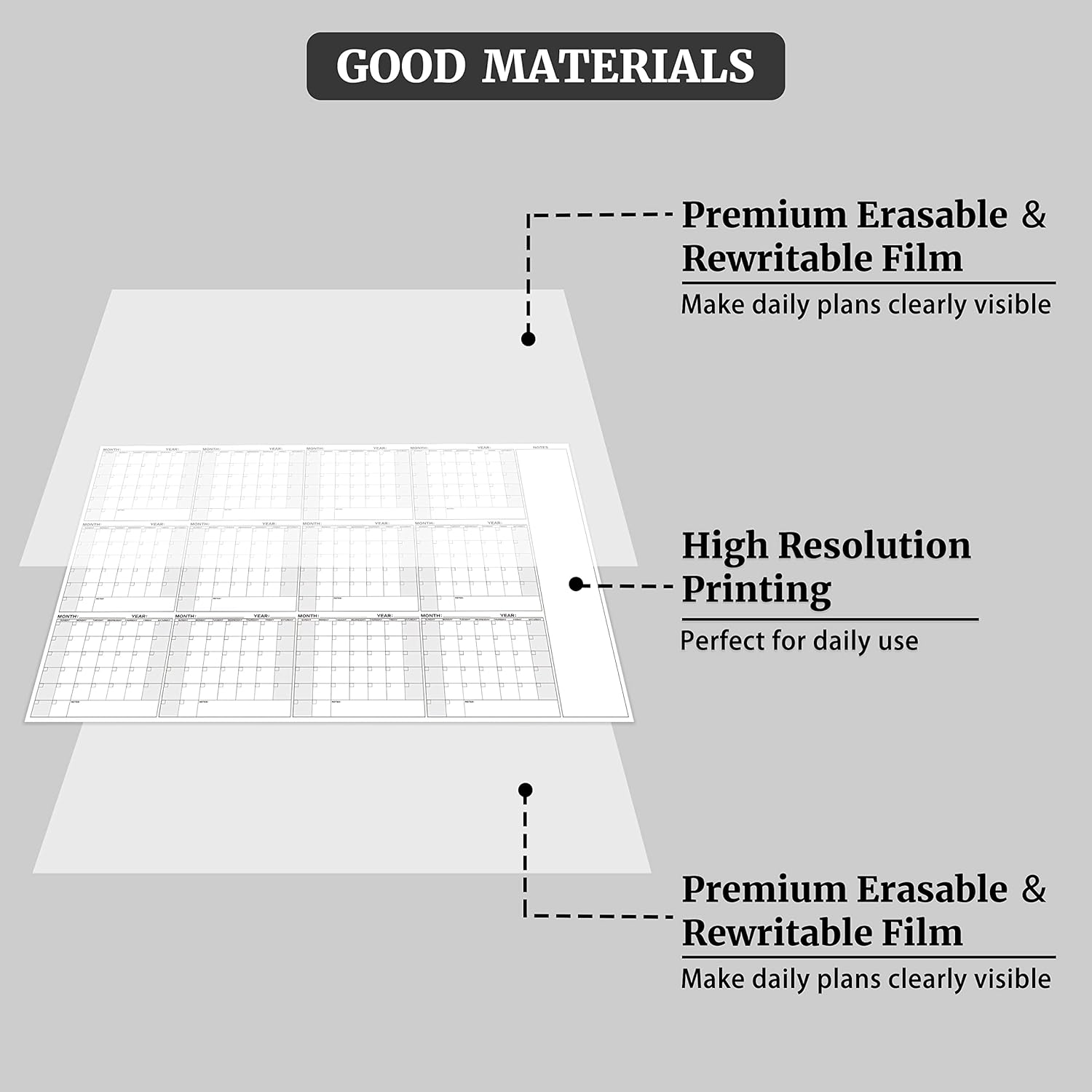 - Large Dry Erase Calendar for Wall – Yearly Wall Calendar Dry Erase, 37" x 57.9", 12-Month Undated Blank Calendar Planner, Reusable Laminated Task Organizer, Great for Office, Classroom, Home