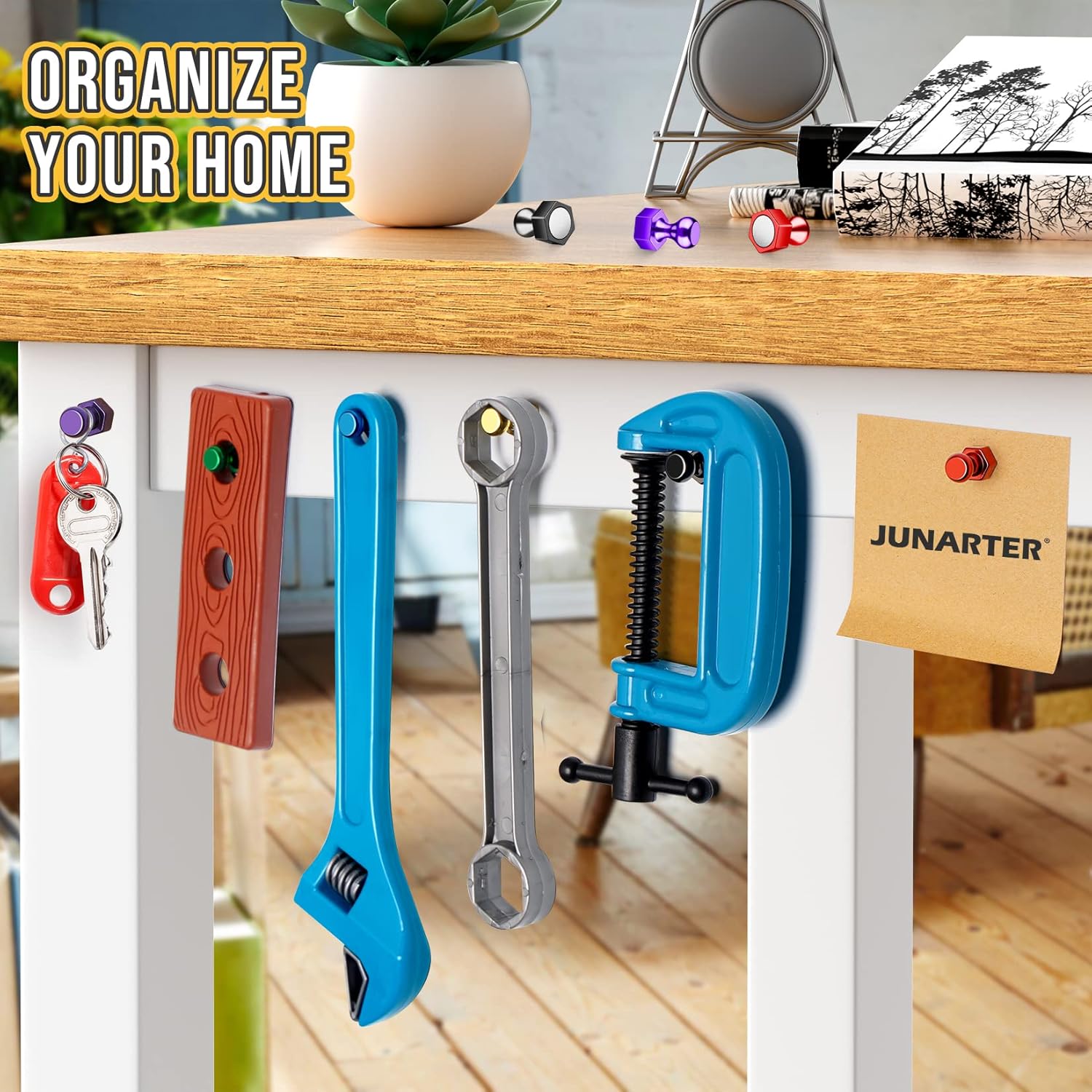 - Strong and Versatile: The Junarter 20 Pack Magnetic Push Pins are designed to provide exceptional holding power, making them ideal for a variety of applications. Whether you need to secure notes, reminders, or photos to your fridge, whiteboard, locker, or any magnetic surface, these neodymium magnets will get the job done.