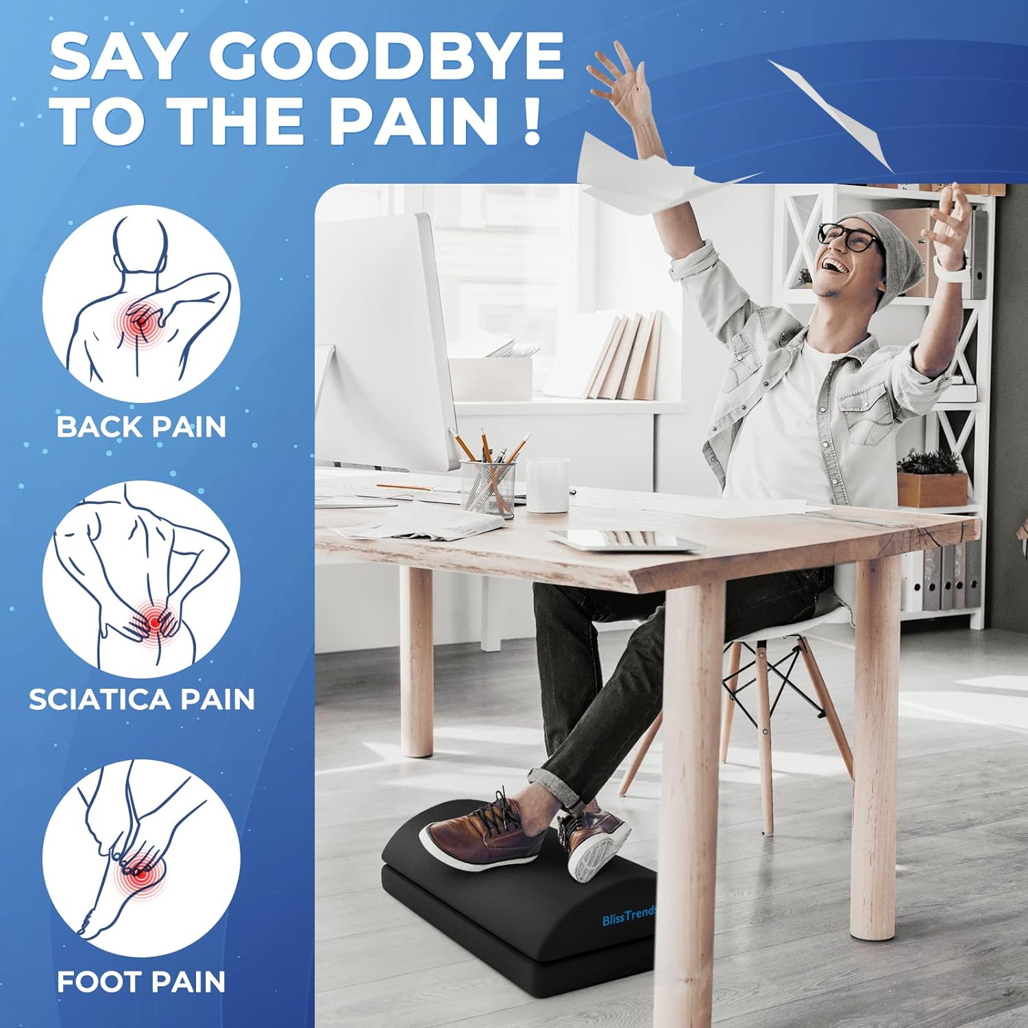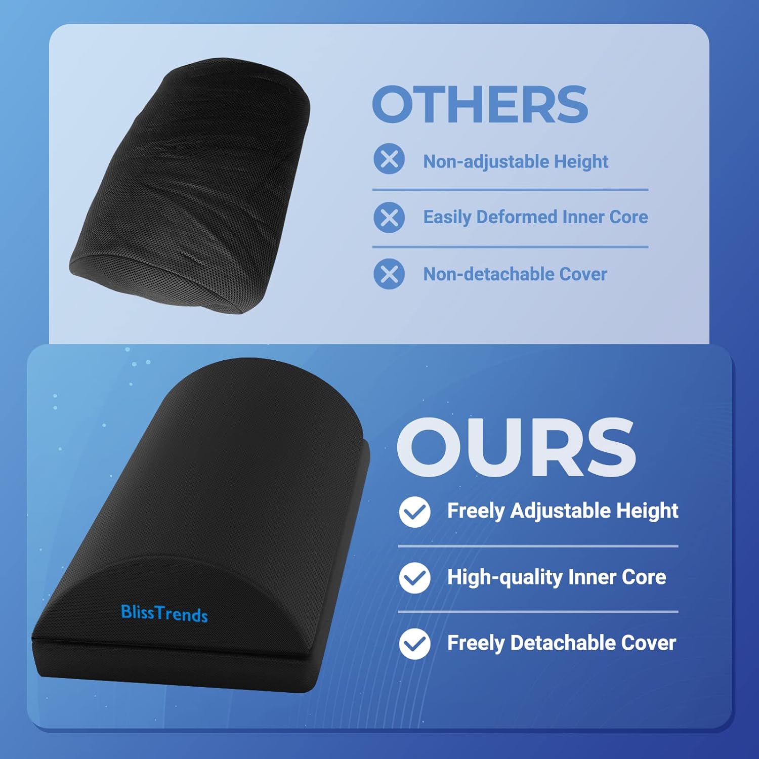 - 【Comfortable Experience】The BlissTrends foot rest has two layers: the lower layer measures 19.7"*11.2"*2.0", and the upper layer is 3.7" thick. The foot stool is ergonomically designed with sufficient height and curvature to better relieve the pressure on your limbs and discomfort when sitting for long periods of time.