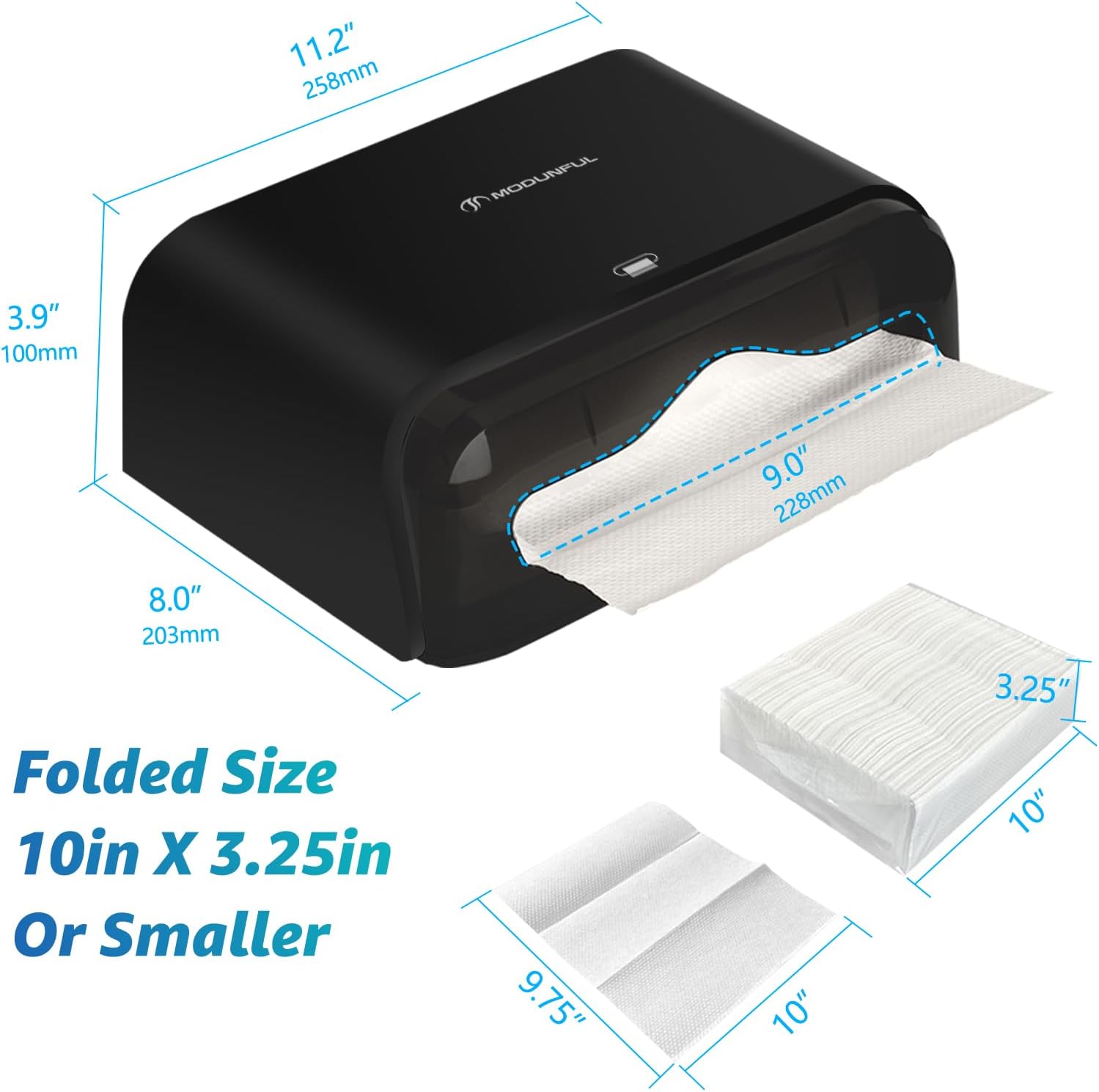 - π Sturdy and Long-lasting Paper Towel Dispenser - Manufactured with the highly regarded ABS plastic as the Construction materials(3.5 mm thk). No cracks and scratches. High capacity for holds up to 200 folded tissues, folded size 10" X 3.25ββ or smaller can be dispensed smoothly with the dispenser. For use with Kleenex or Scott Slim fold Towels.