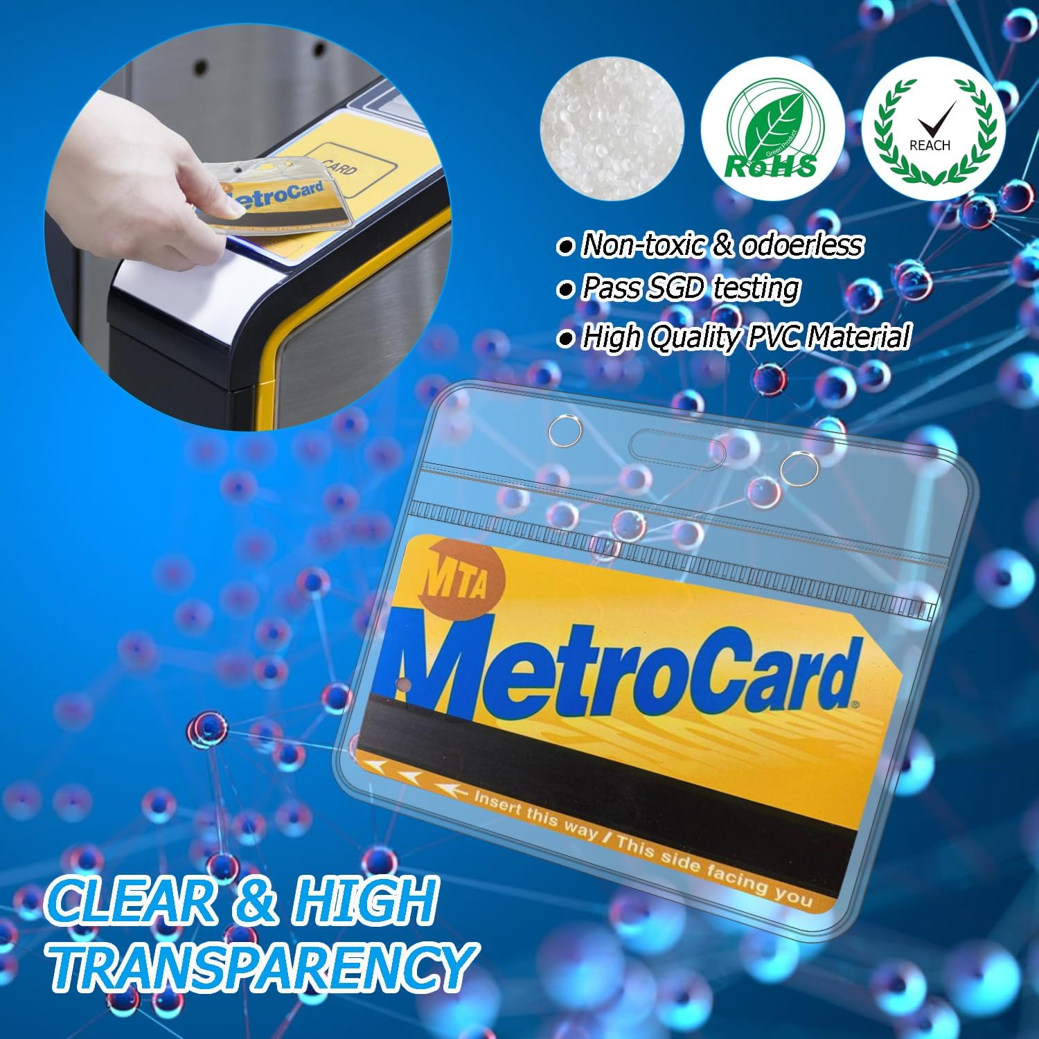 - Waterproof and Easy to Use. Made of clear PVC material, this badge holder with clip with resealable zipper is completely waterproof, well protecting your cards from moisture, splashes and accidental splashesr
