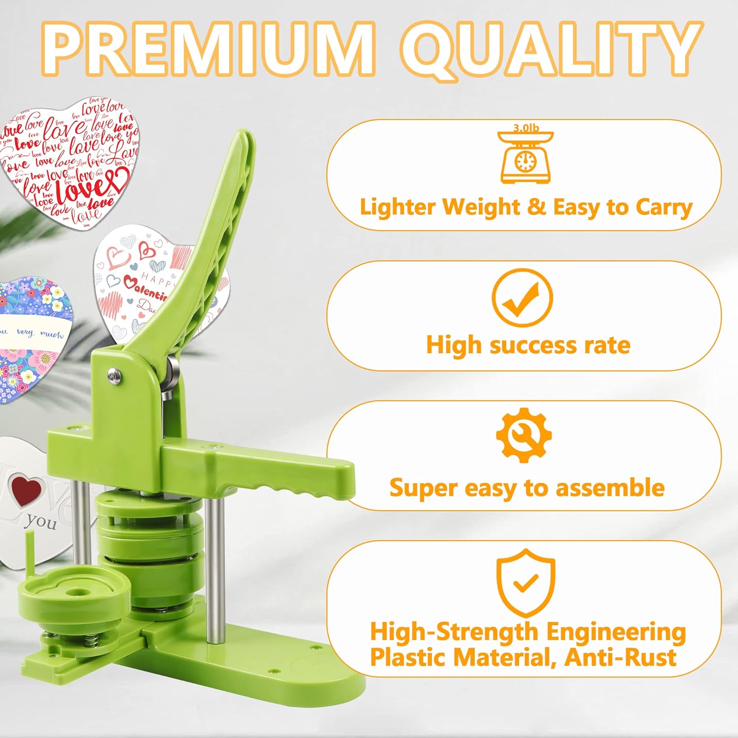 - ✔️【High Success Rate】Our Button pin maker machine has been upgraded in labor-saving positioning design, more accurate positioning, need less force to press, high success rate, very time-saving and labor-saving and easier to make hundreds of DIY buttons in a short time.