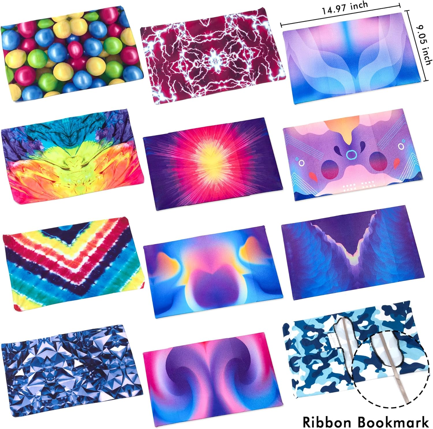 feela 12 Pack Jumbo Fabric Book Covers, Stretchable Washable Durable Reusable Nylon, for Hardcover Textbooks Notebooks up to 9'x11', 12 Patterns